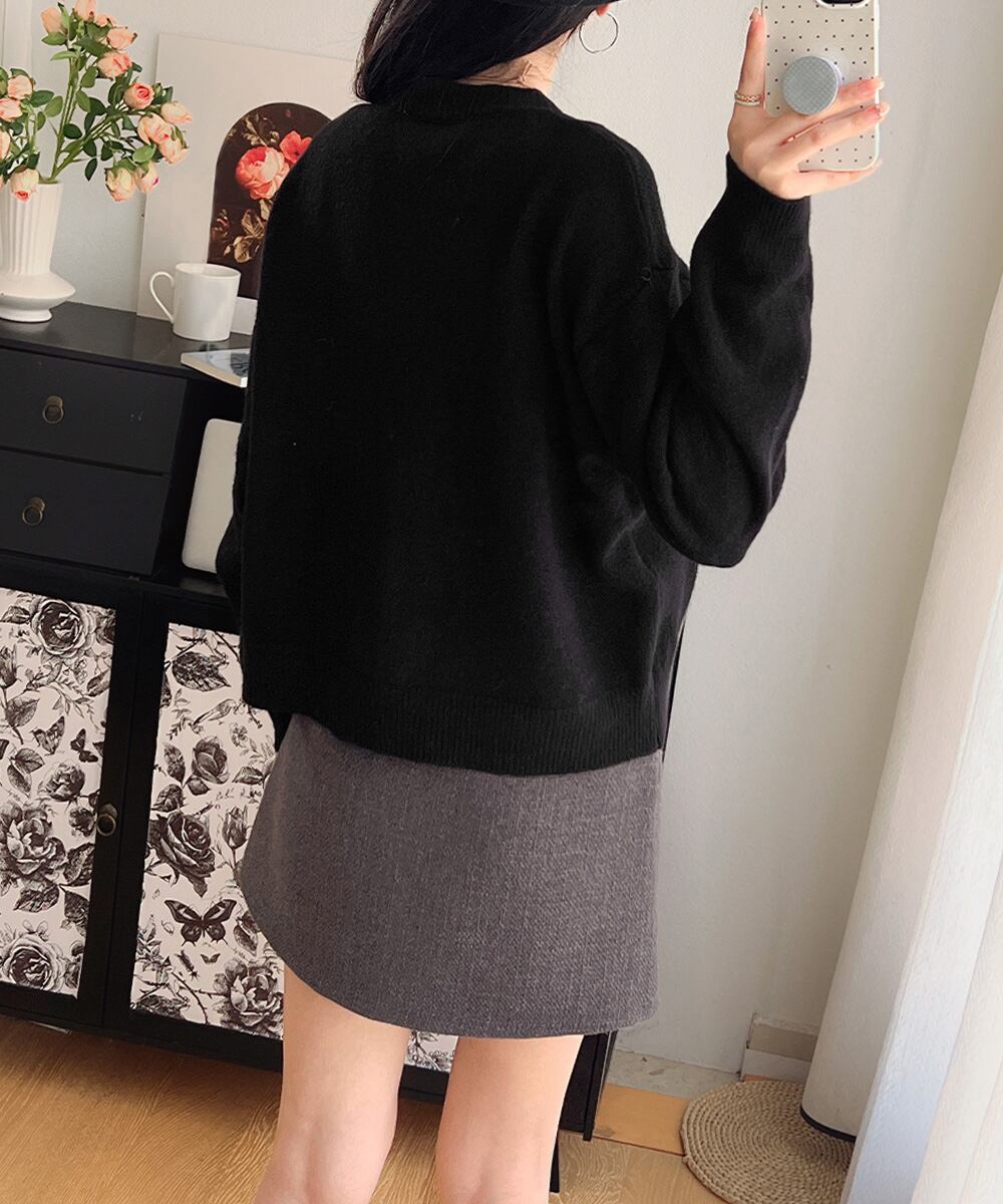 前開きニット 無地 長袖カーディガン女 丸首ニット 韓国風