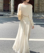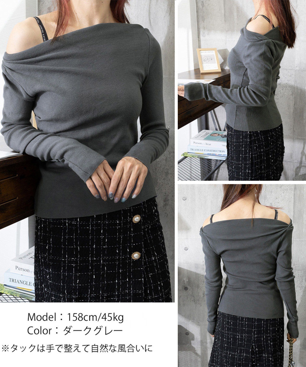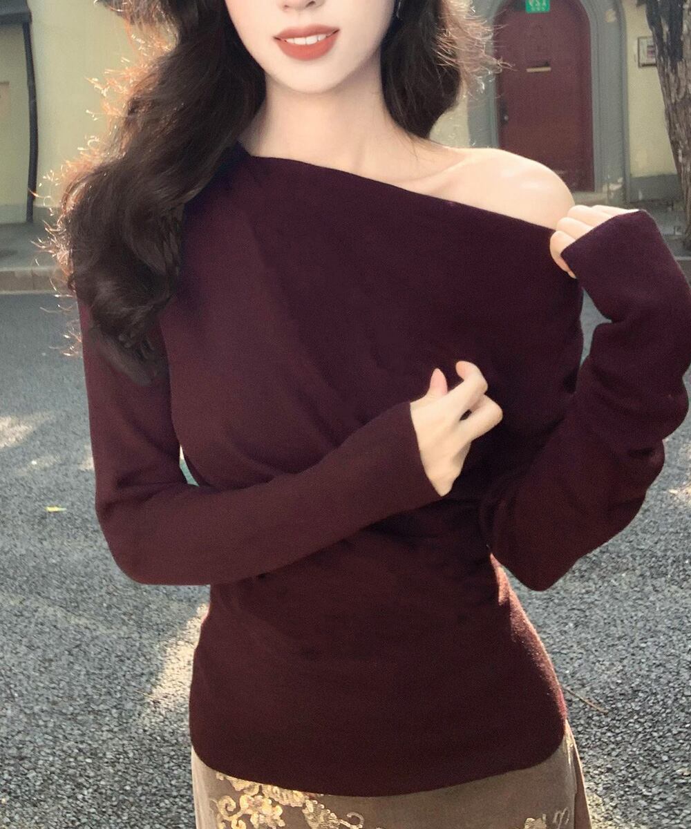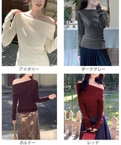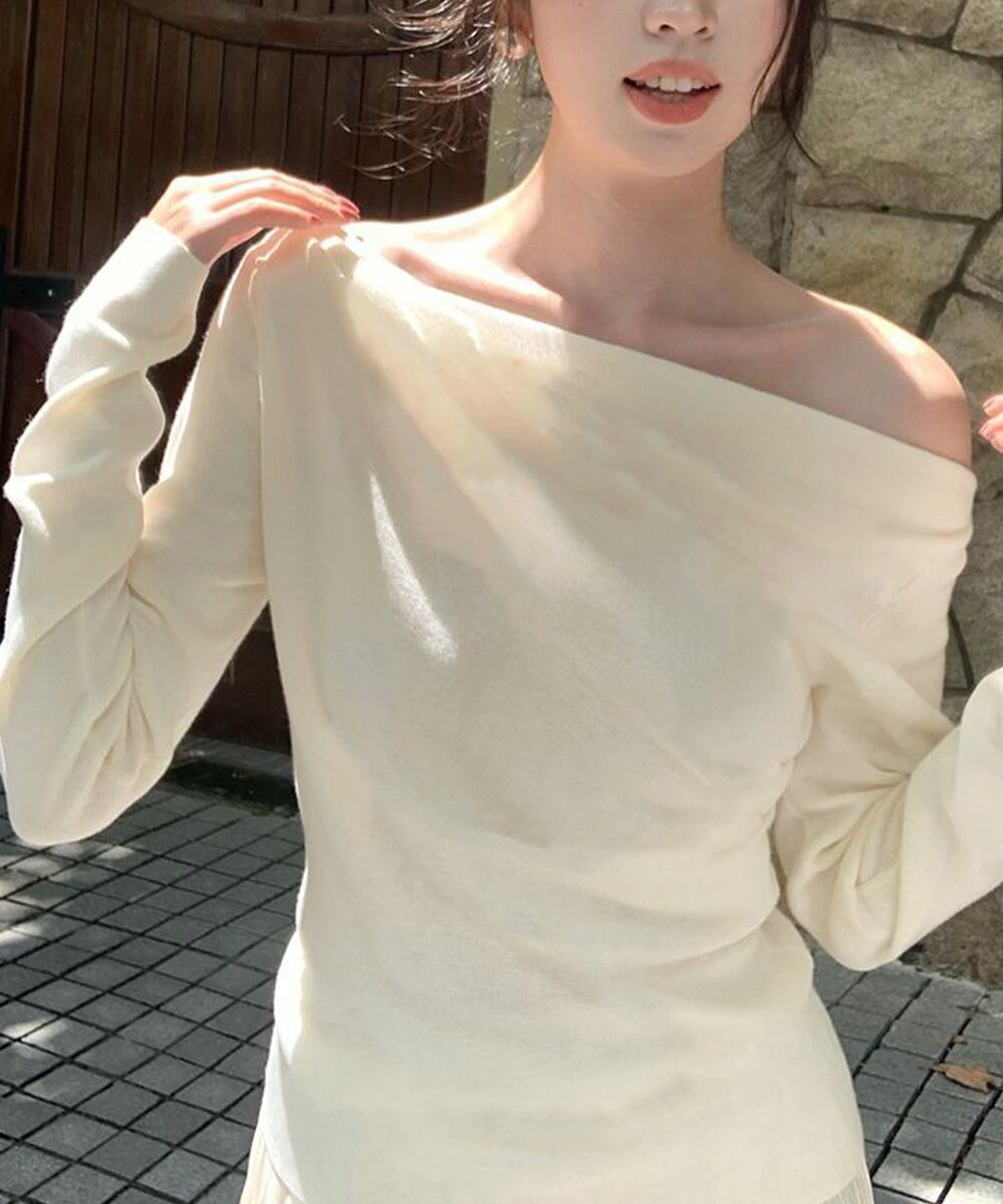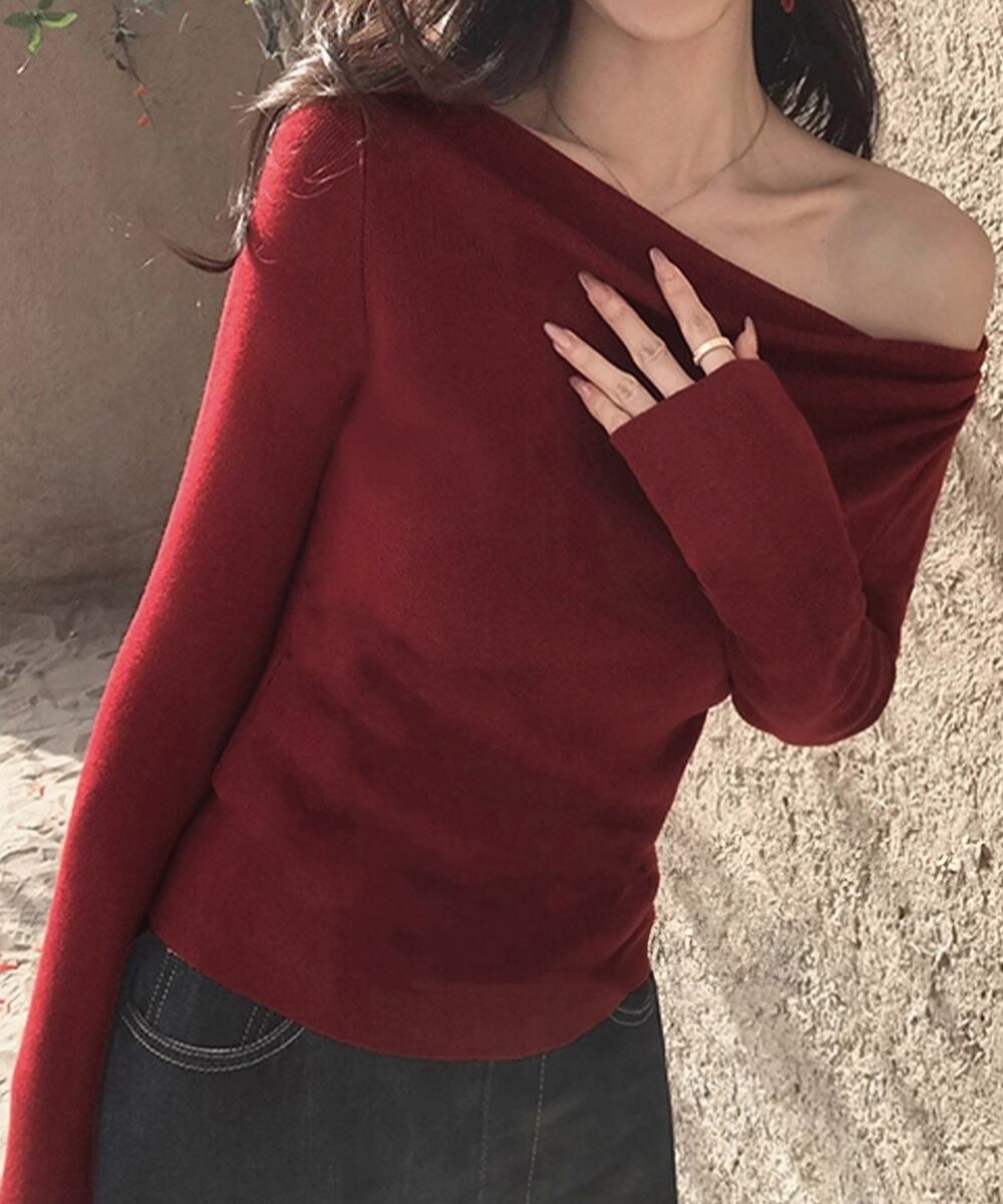 オフショルニットトップスサイドタック長袖