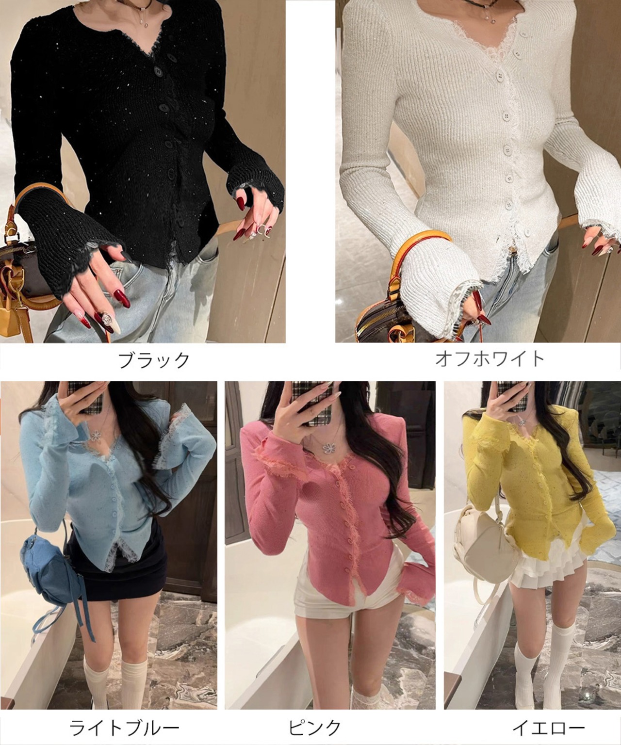 カラー:ブラック/オフホワイト/ライトブルー/ピンク/イエロー