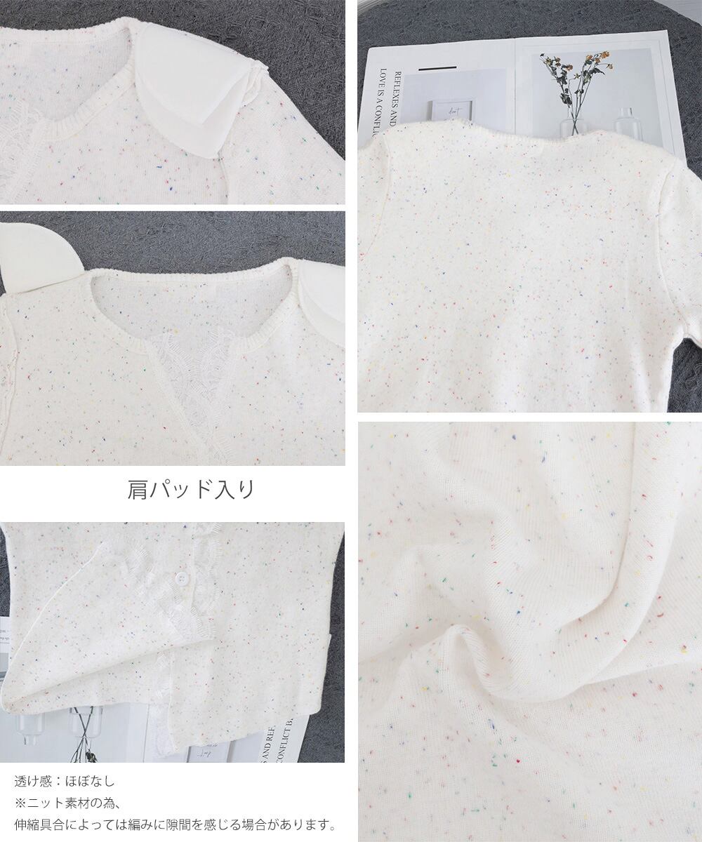 レースドッキングニットトップス レディース きれいめVネックニット羽織り キーネックニットソー おしゃれ 春秋冬セーター