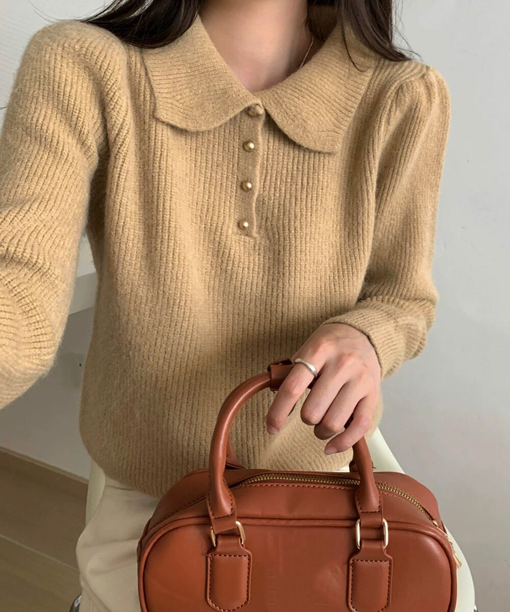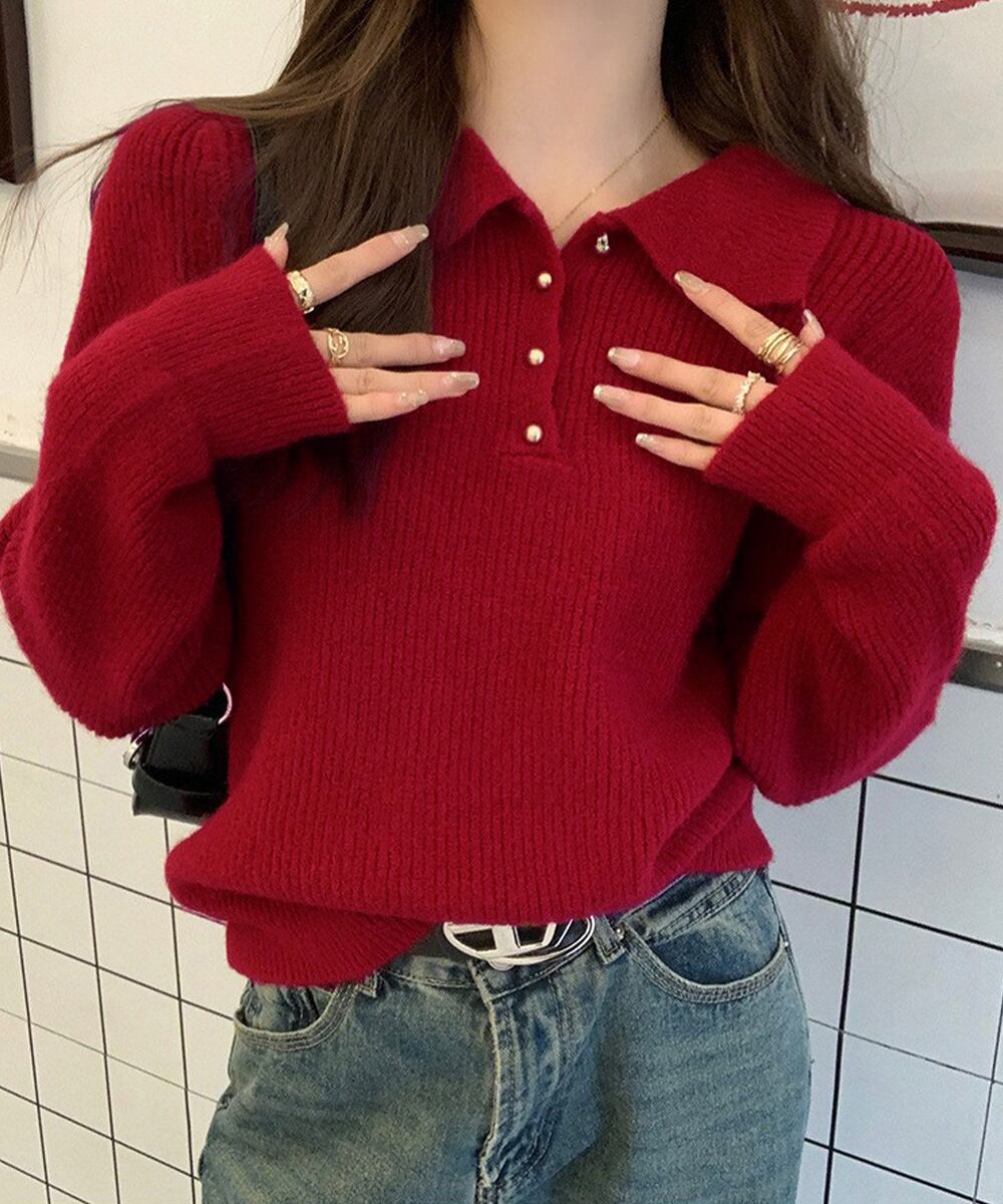 やわらかニット人気 韓国風着やせニット 抜け感ニット 無地
