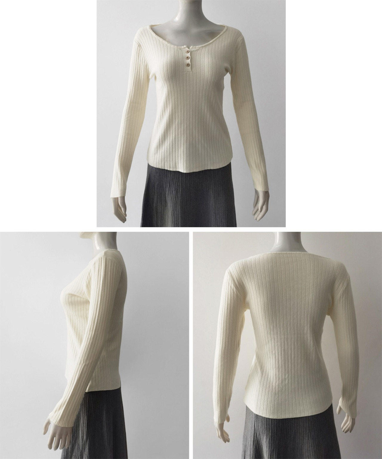 1枚でも重ね着でも着回し上手なリブニットトップス。