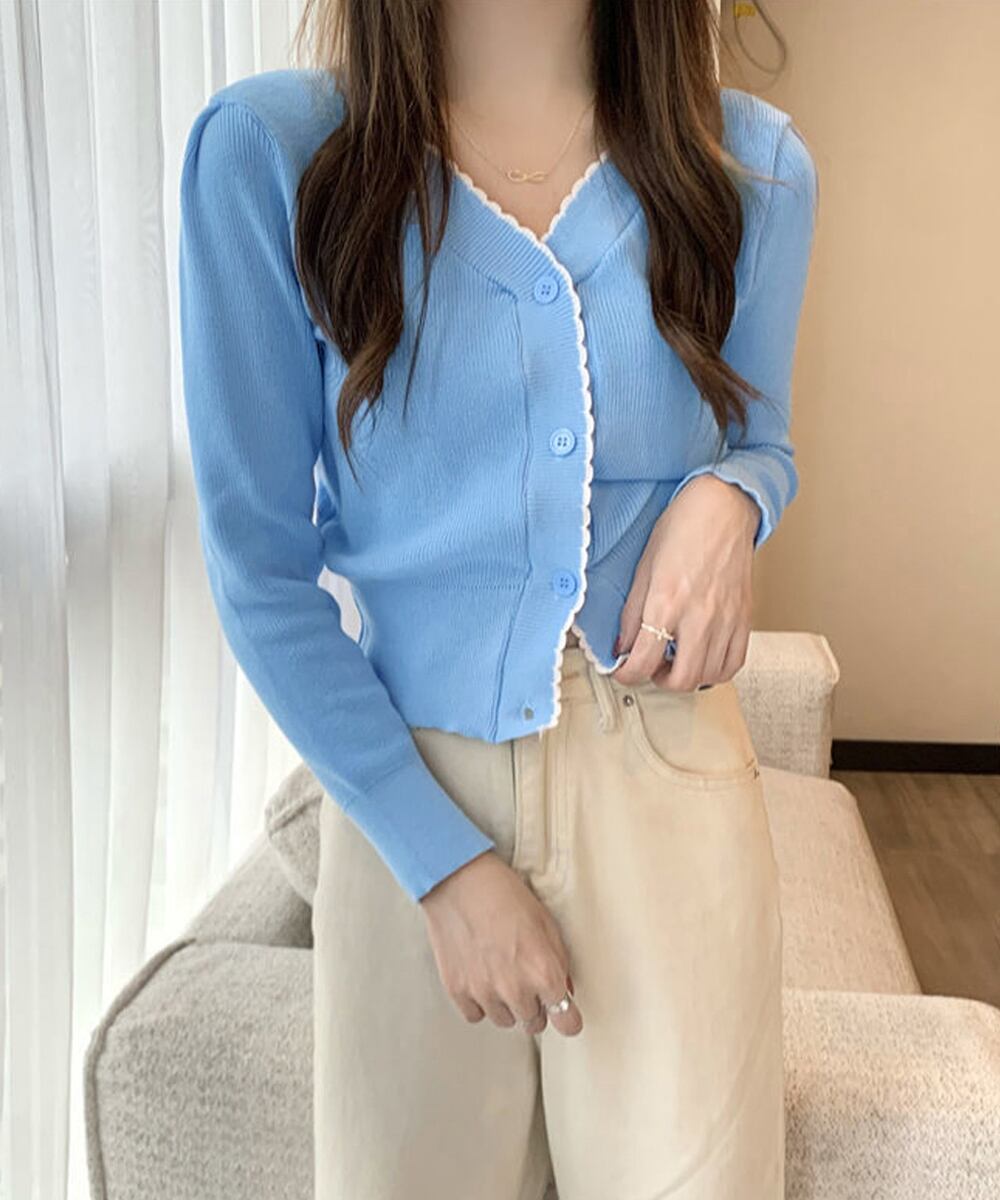 ニットソー 韓国風 カーディガン 長袖 大人可愛いトップス