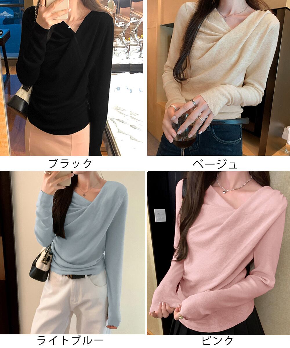 ドレープネック秋服 薄手セーター 上品 ニットカットソー春