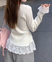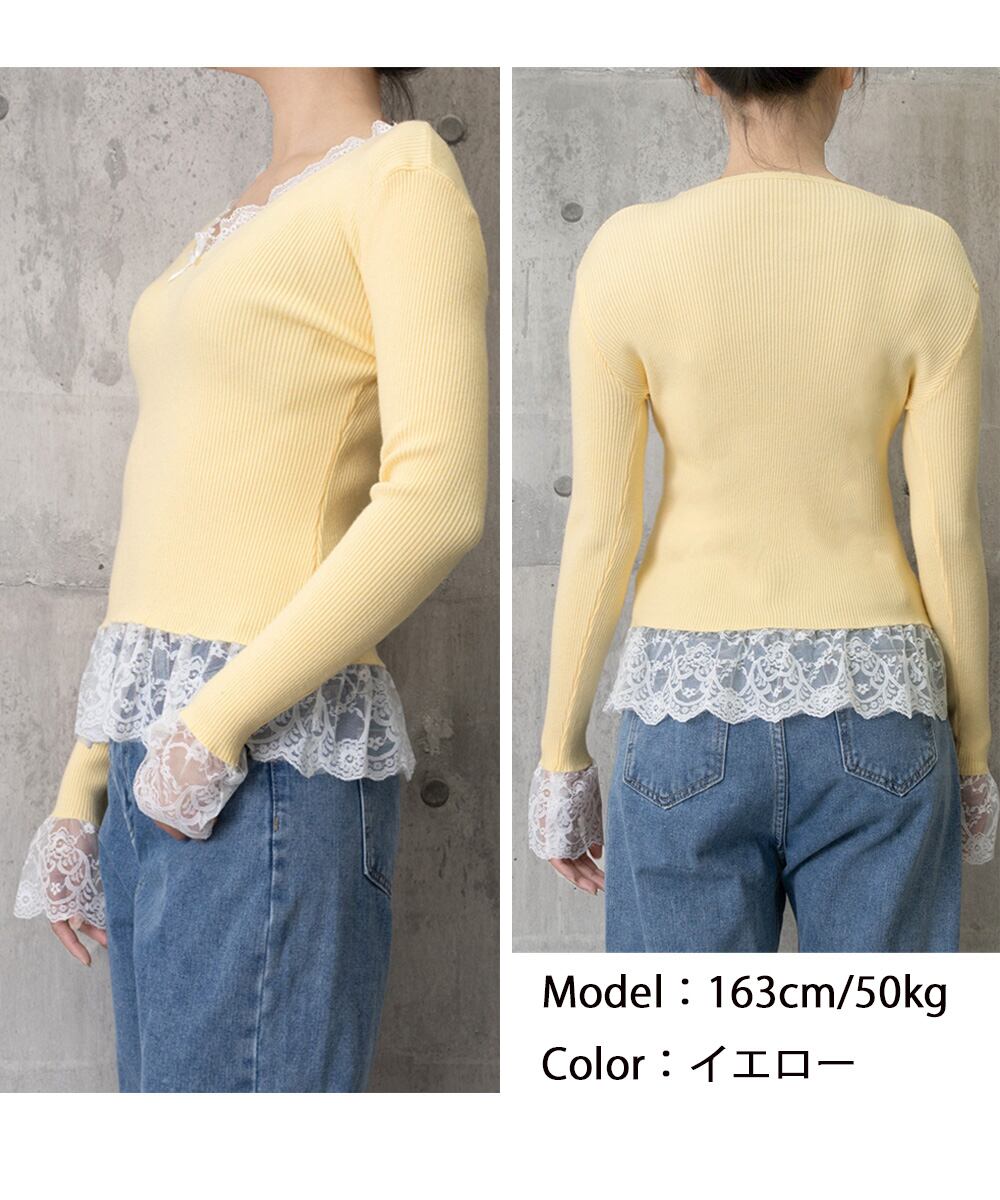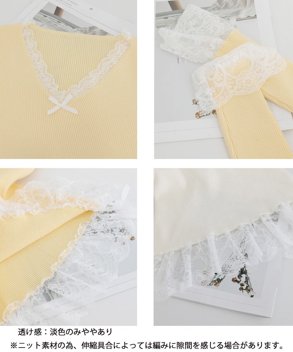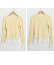 ニットトップス レース切替え Vネック服