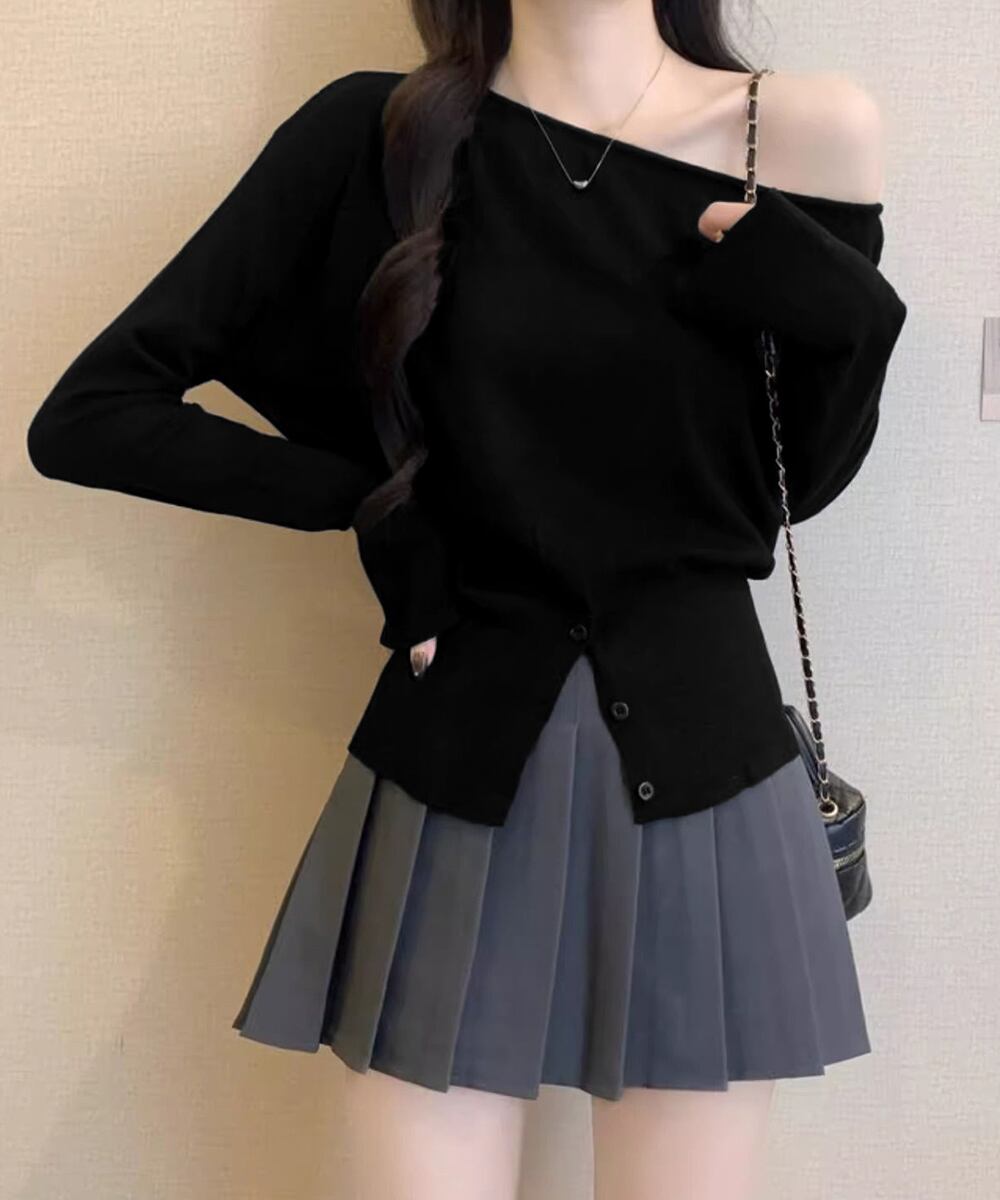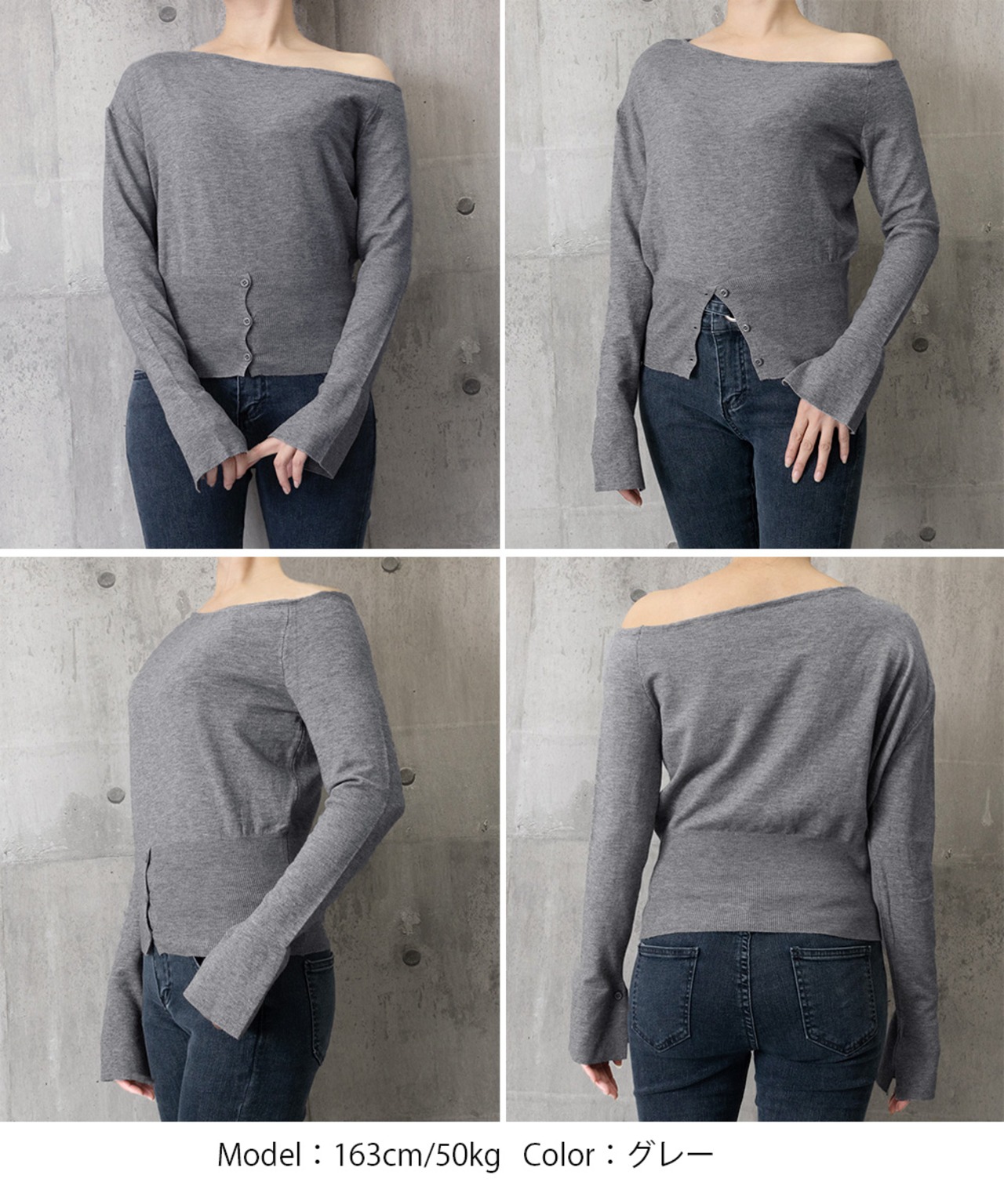 抜け感のあるシルエットが魅力のワンショルダーニットトップス。