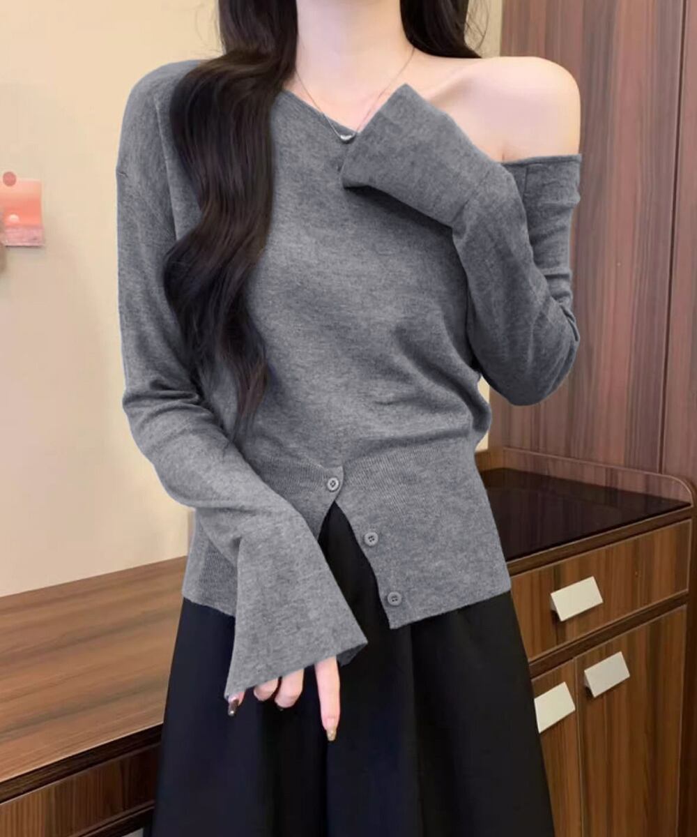 レディース 大人カジュアルニットプルオーバー きれいめ 肩出しニットウェア 肩見せ 長袖ニットセーター 韓国風ニットソー