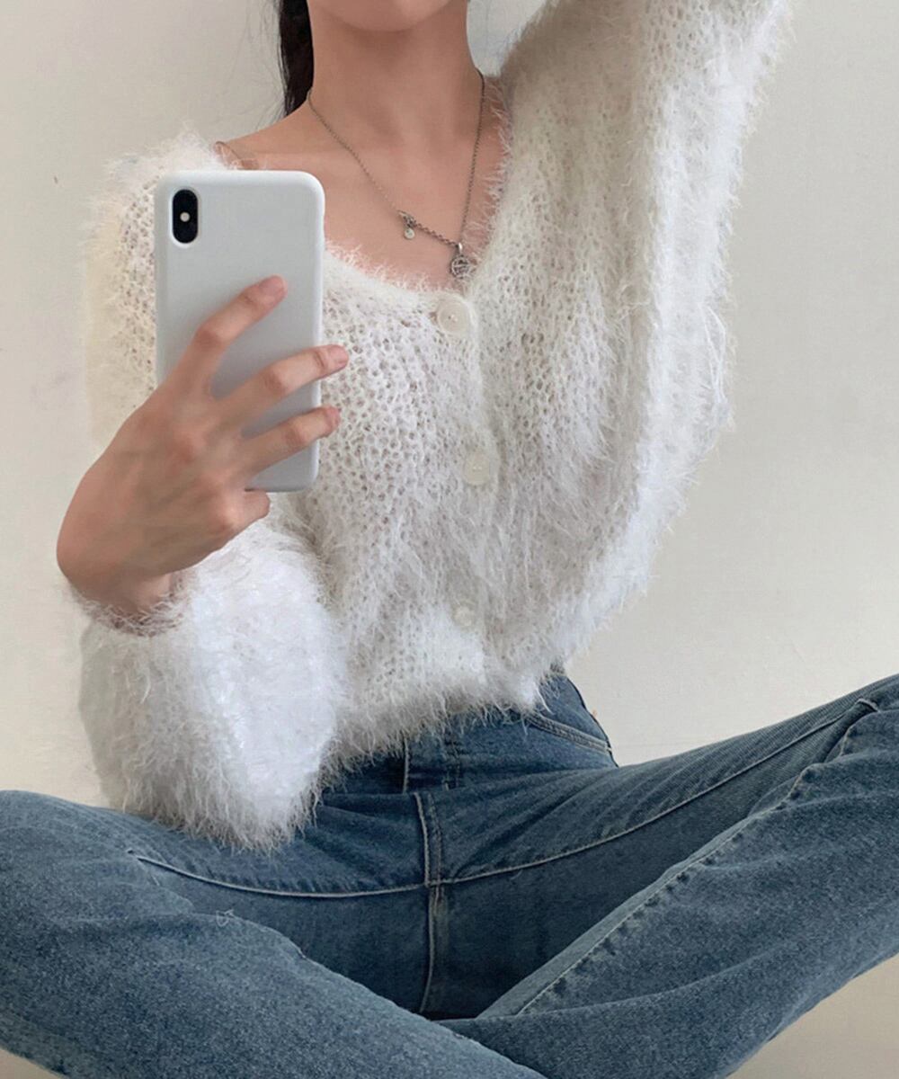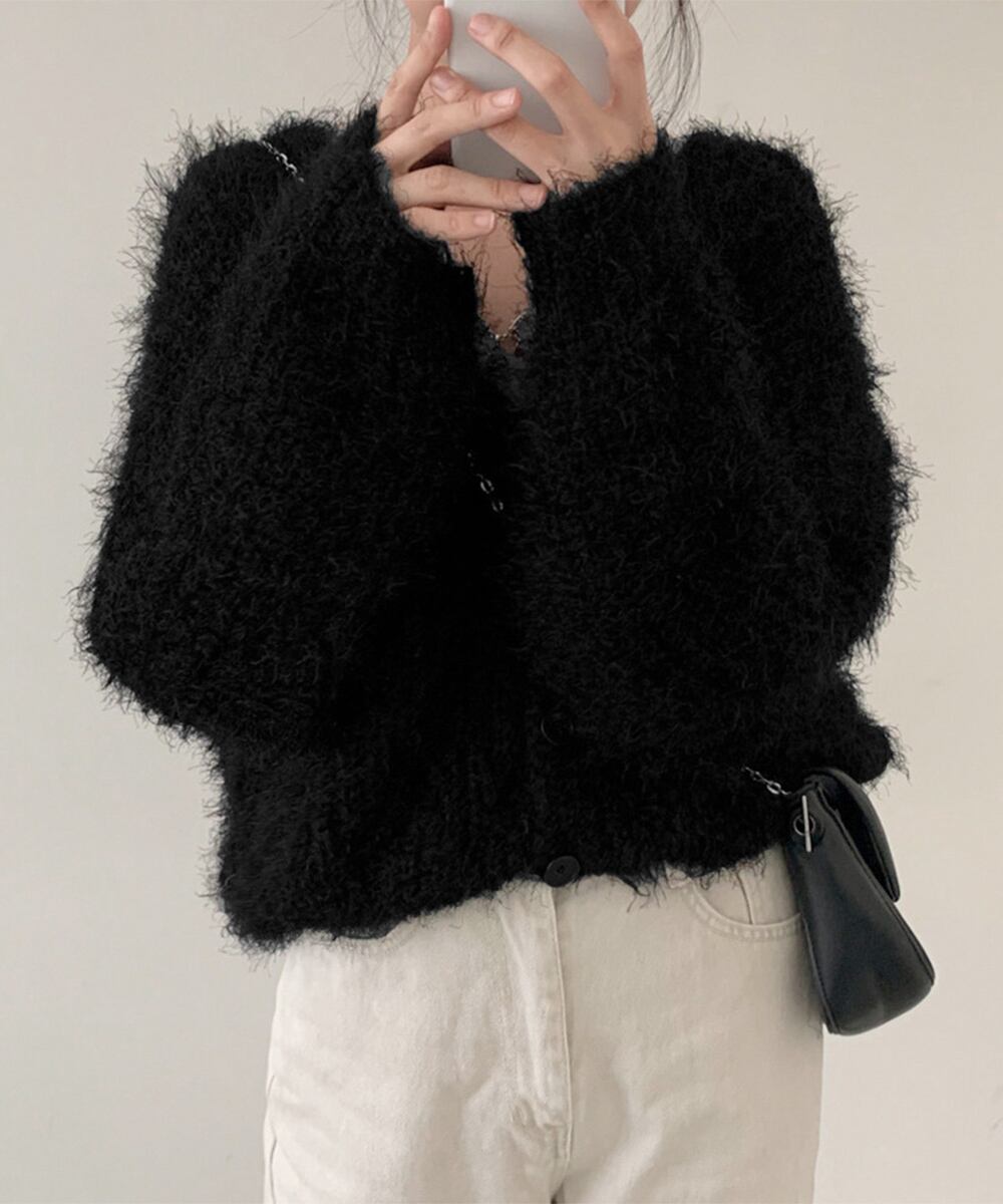 シャギーニットカーディガン モヘアタッチ