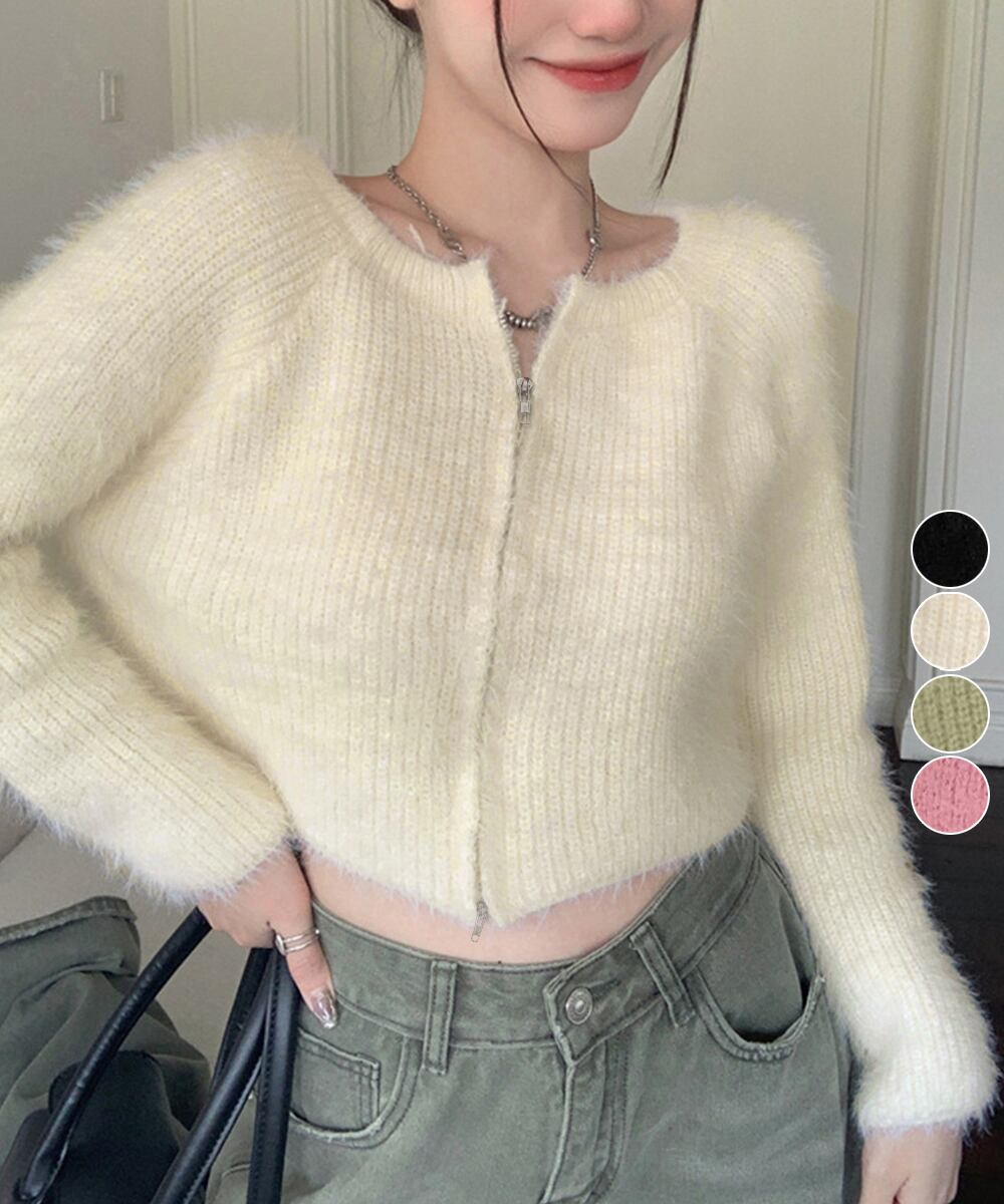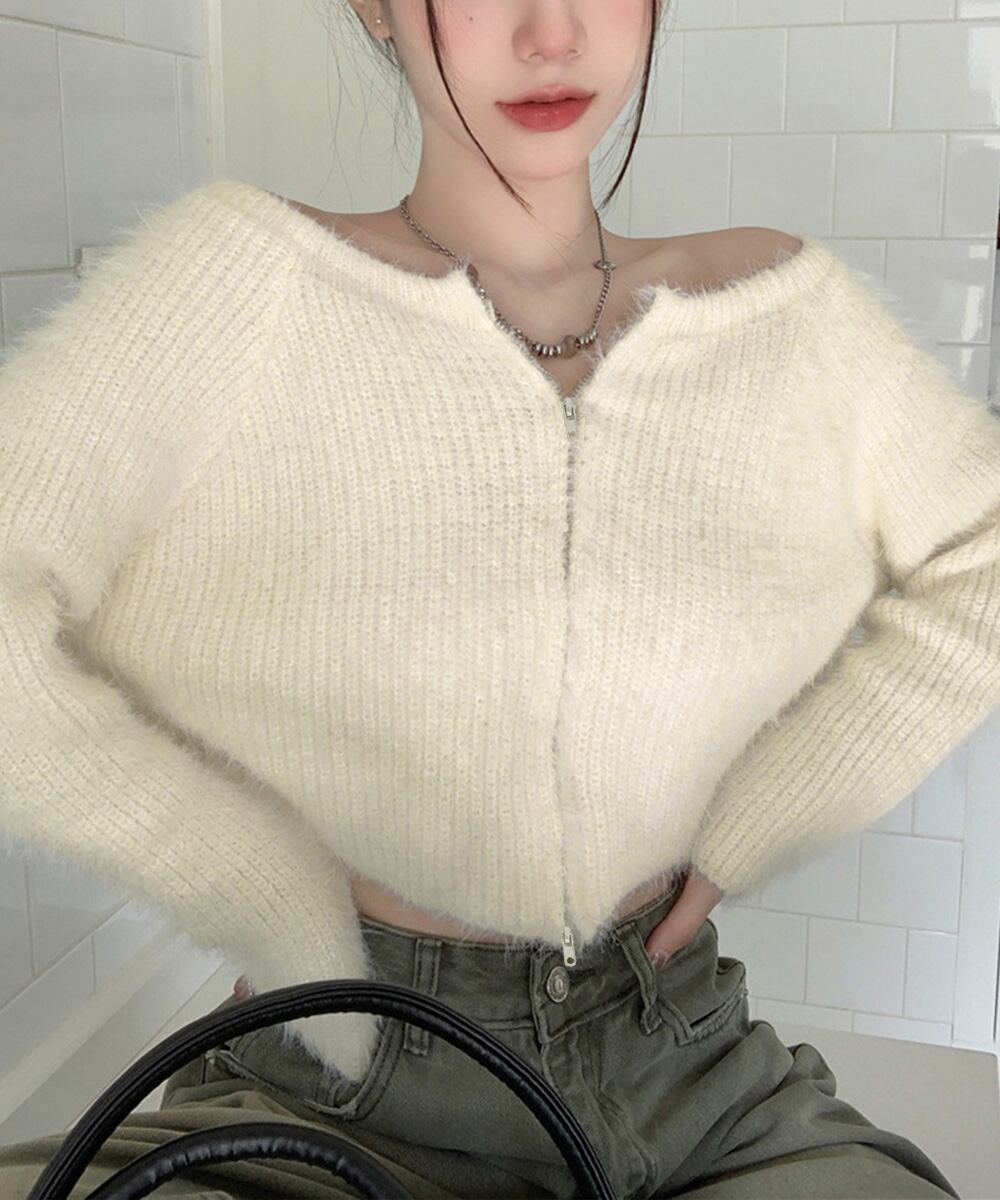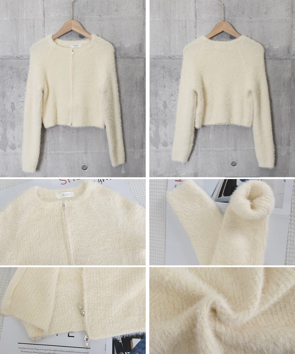 ダブルジップ シャギーニット ショート丈