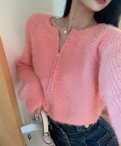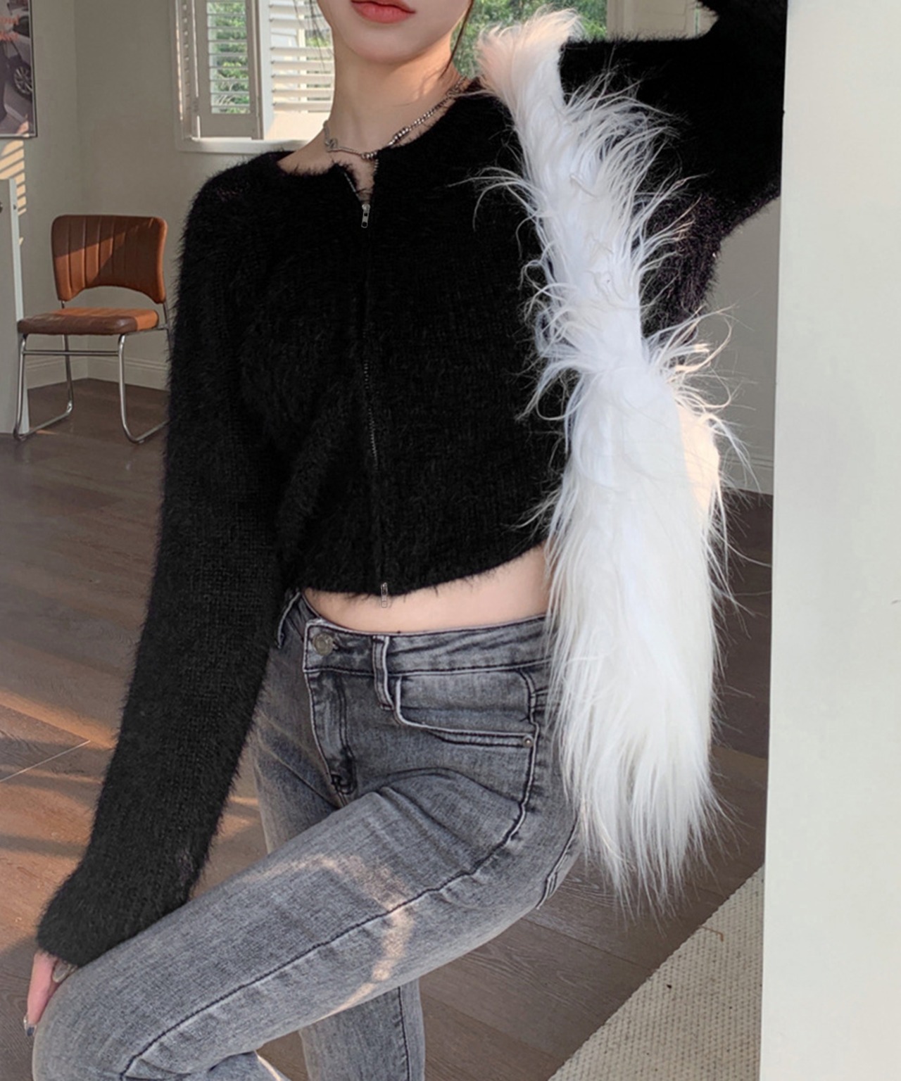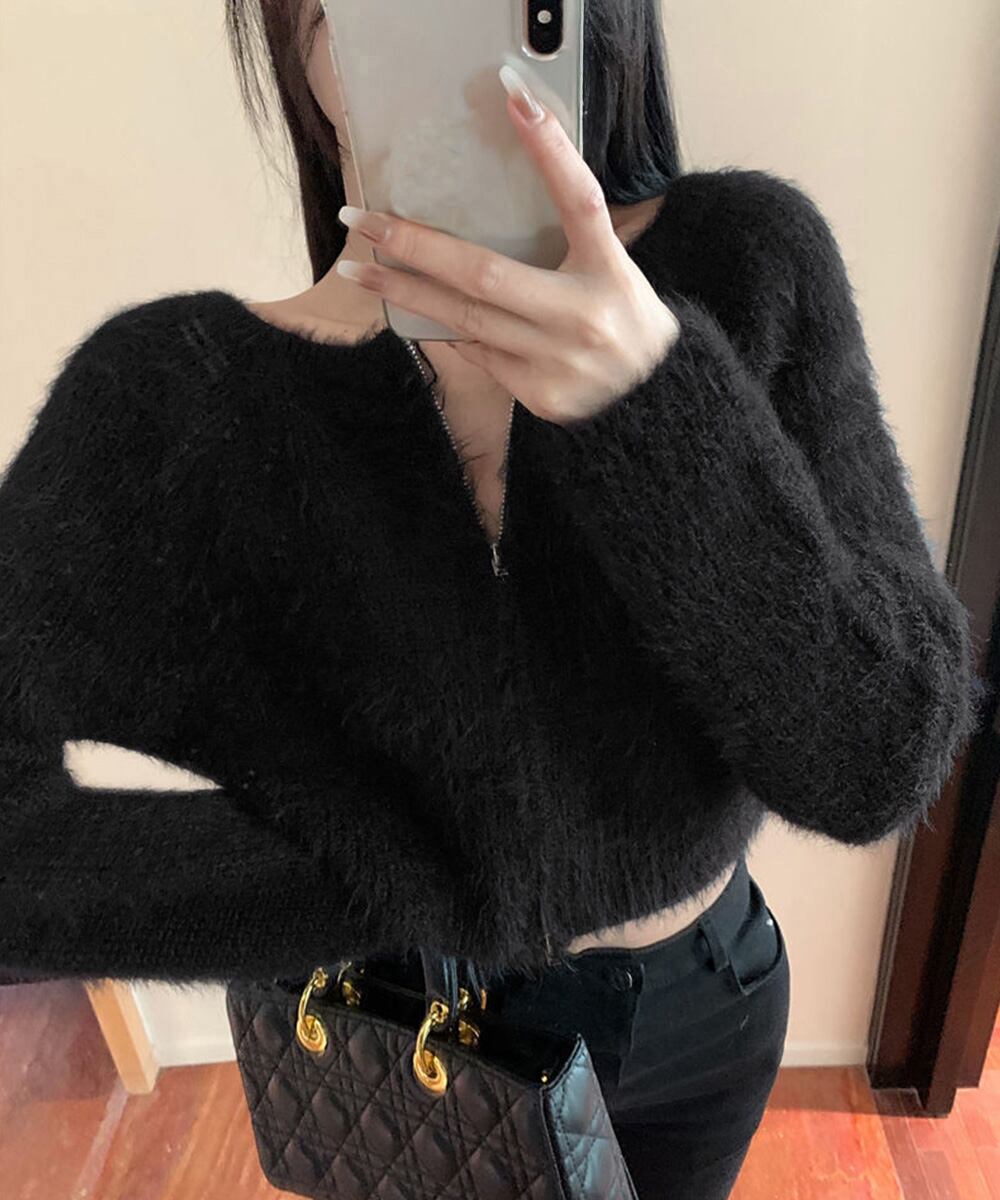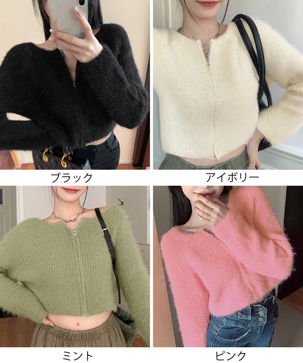 ダブルジップ シャギーニット ショート丈