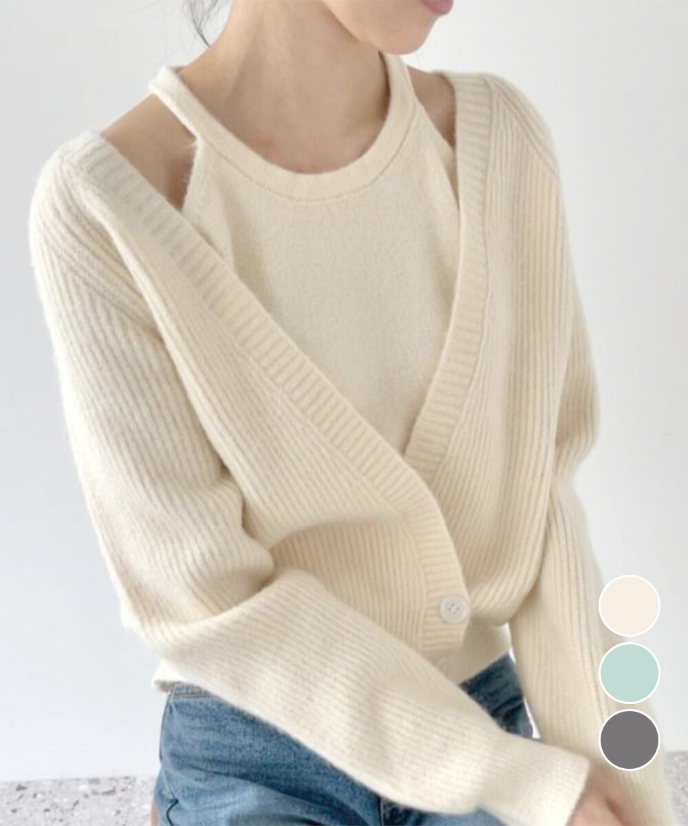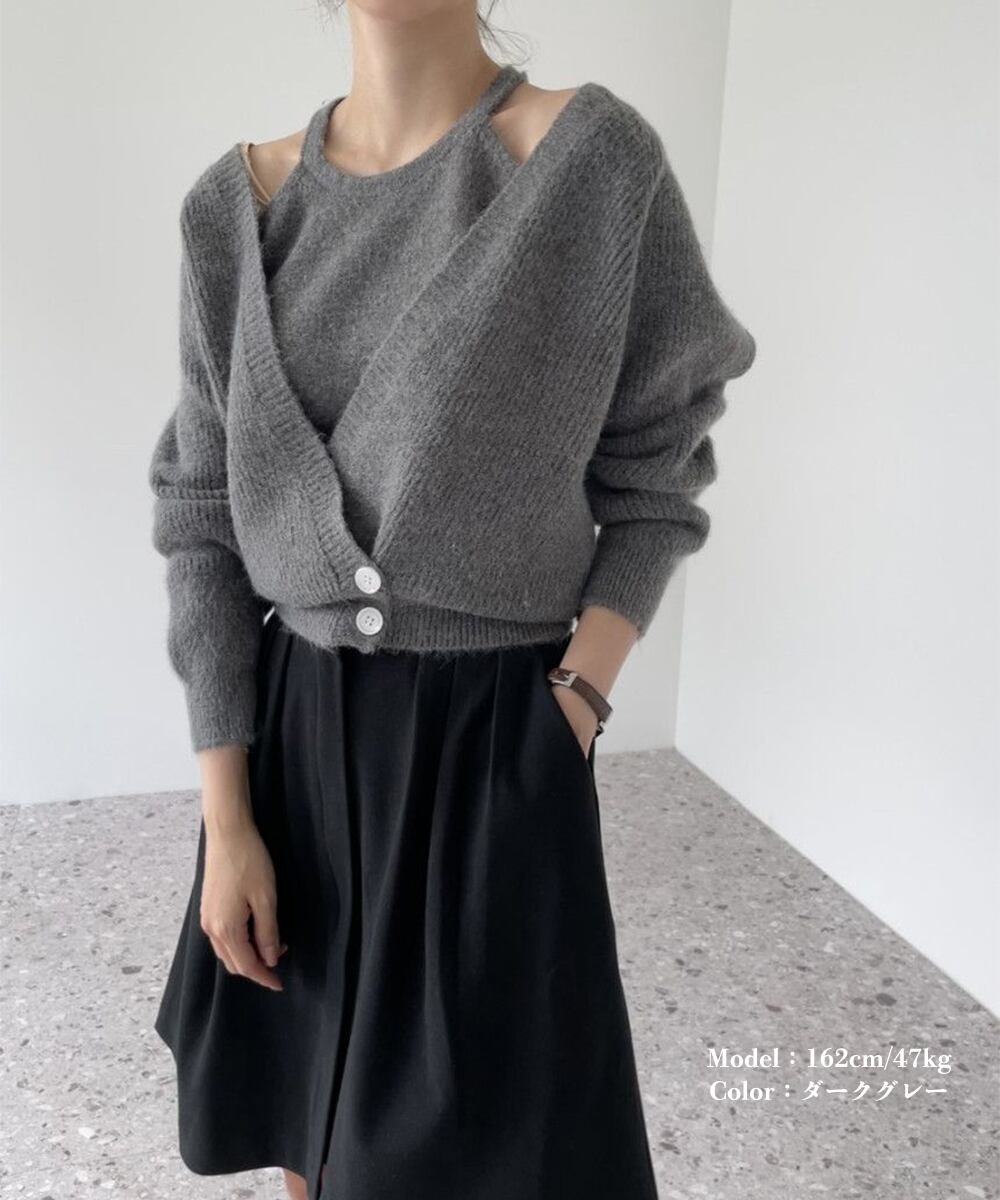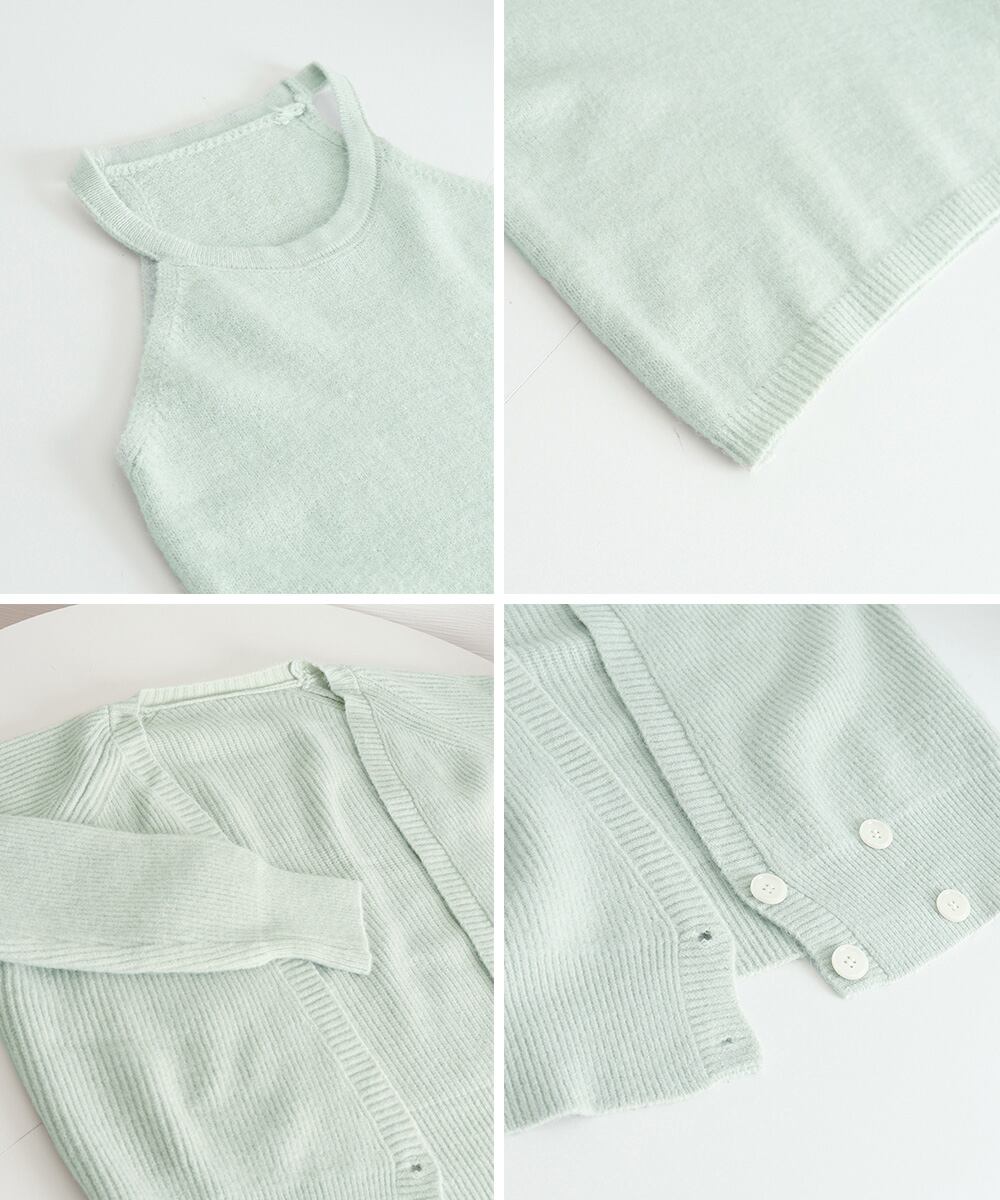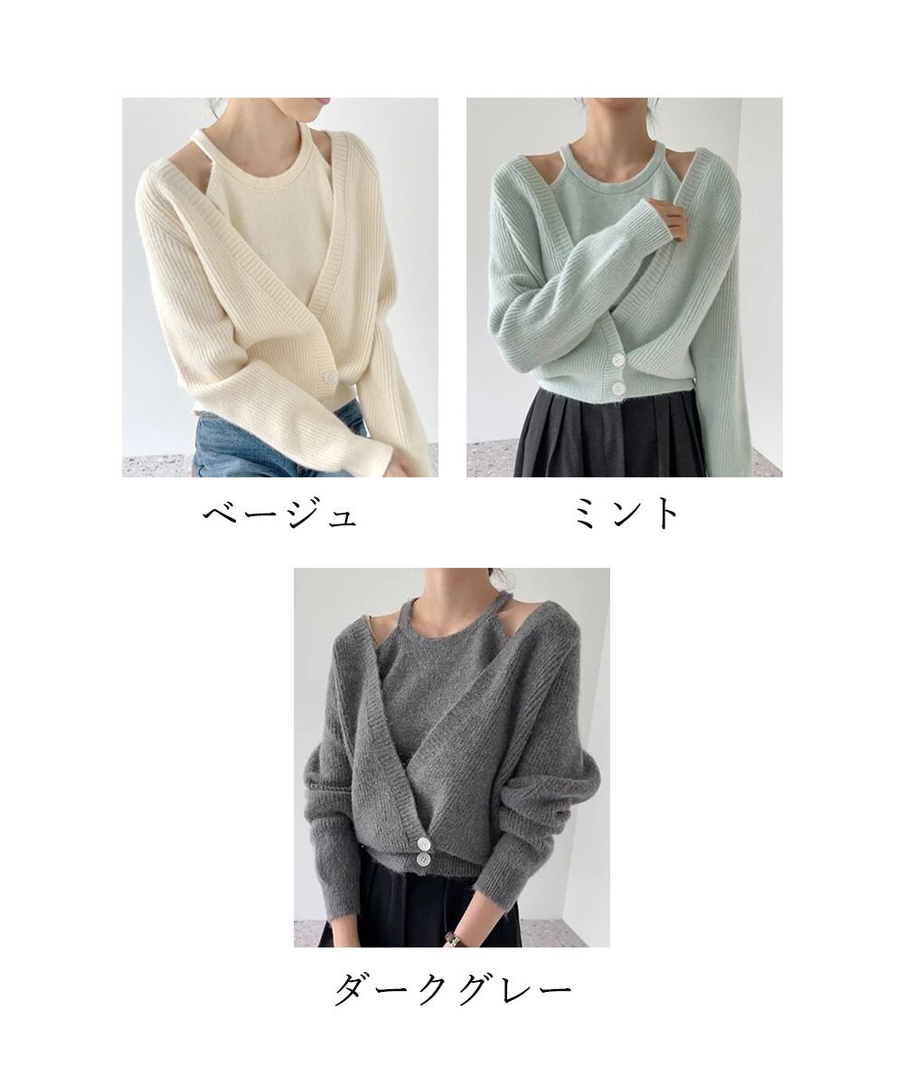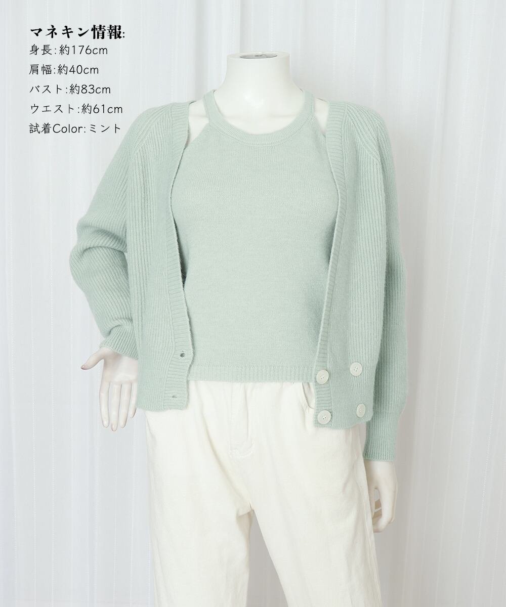 ニットカーディガン ニットキャミソール 肌見せ 無地 ボタン おしゃれ きれいめ 大人 フェミニン カジュアル