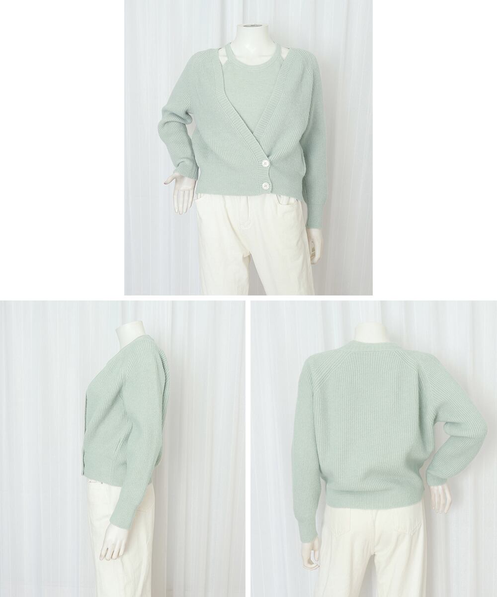 柔らかな風合いが魅力のカーディガンとニットキャミソールのセットアイテム。