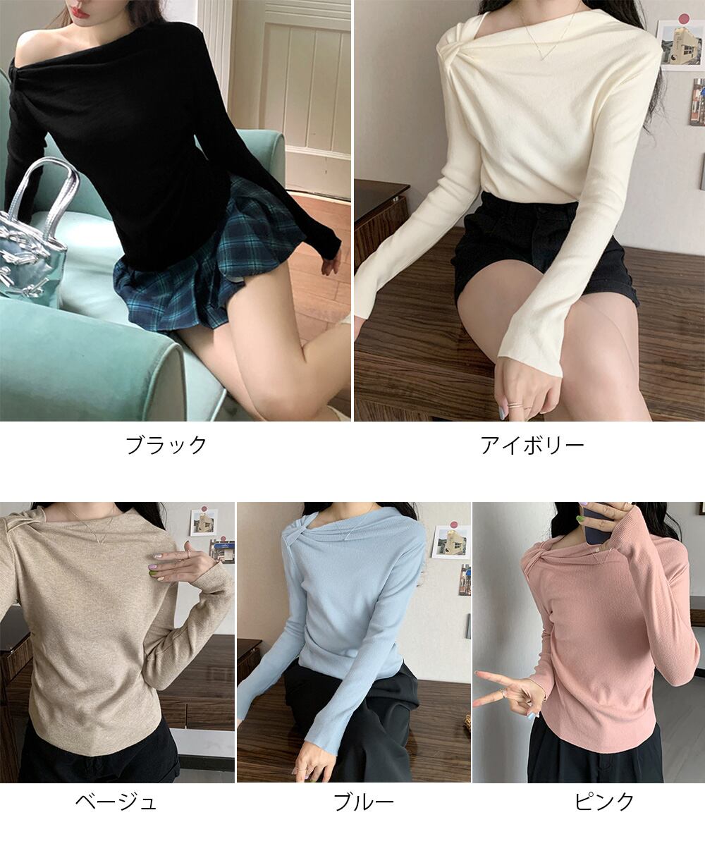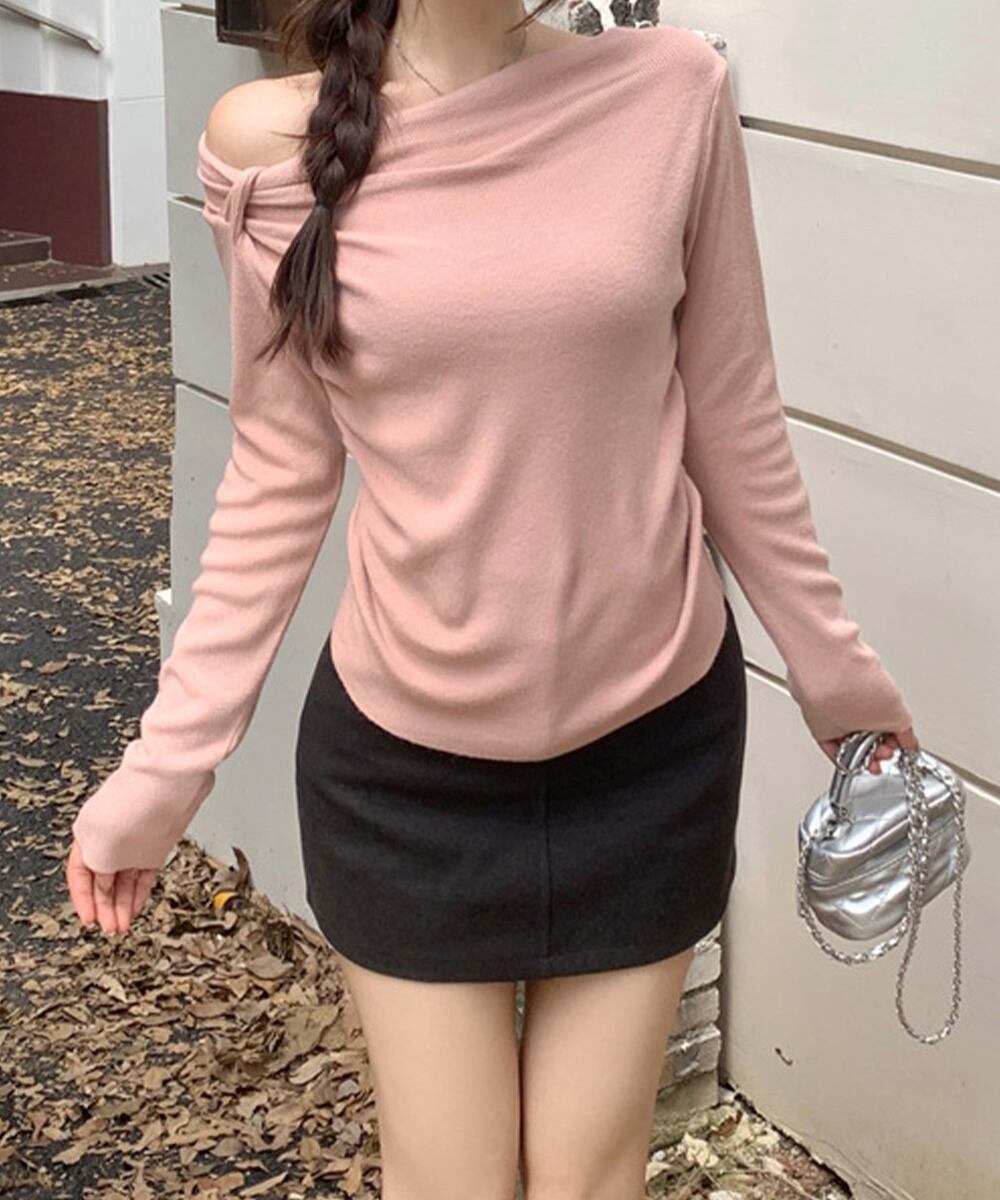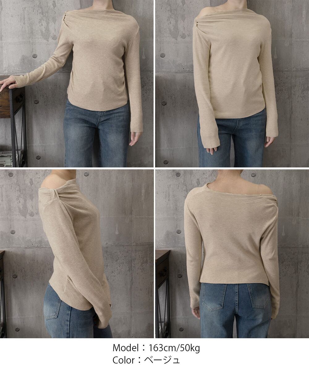 オフショルダーニットトップス 肌見せ秋服