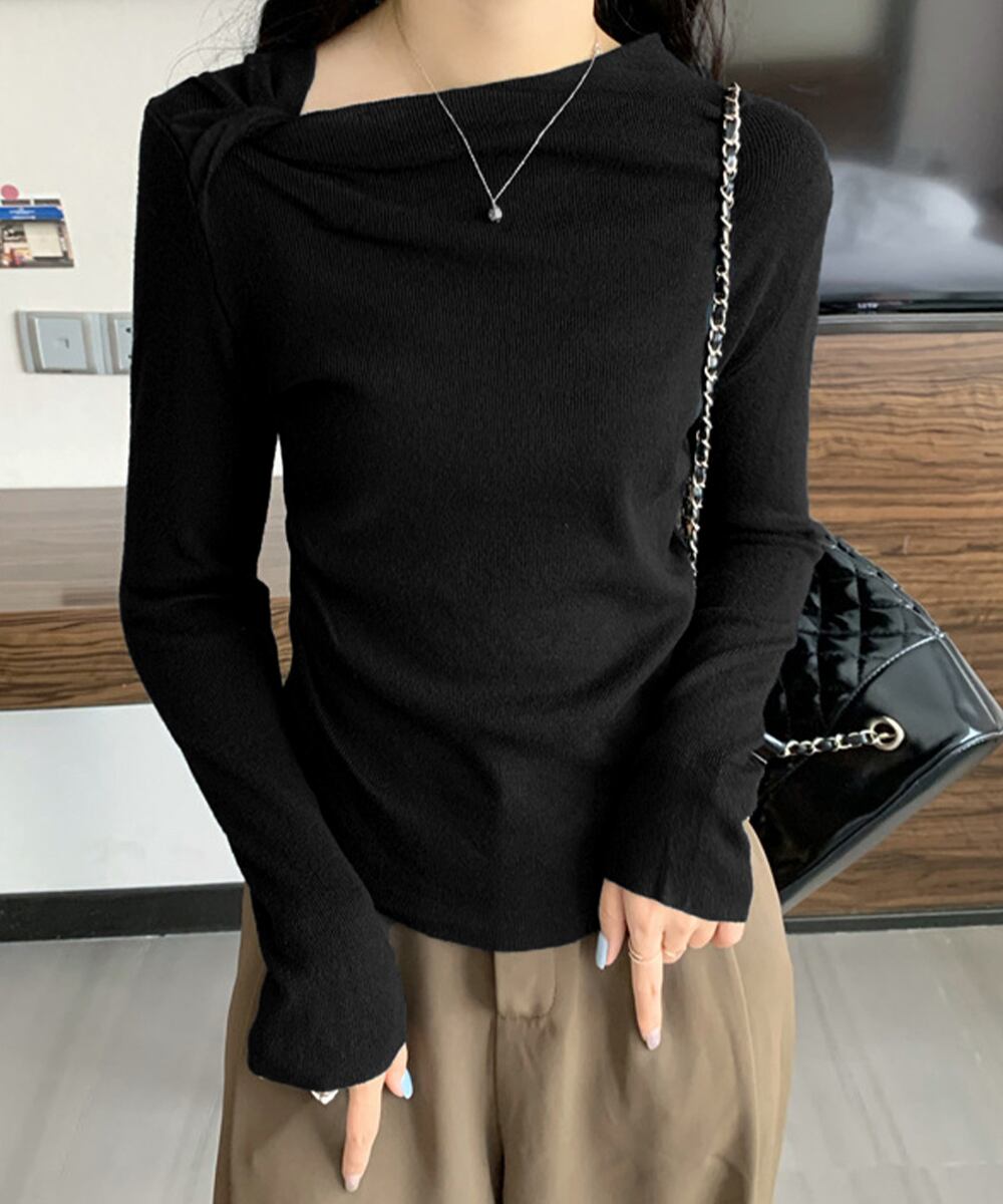 春秋冬ニットソー黒 長袖ニット 着回し 無地ニットインナー