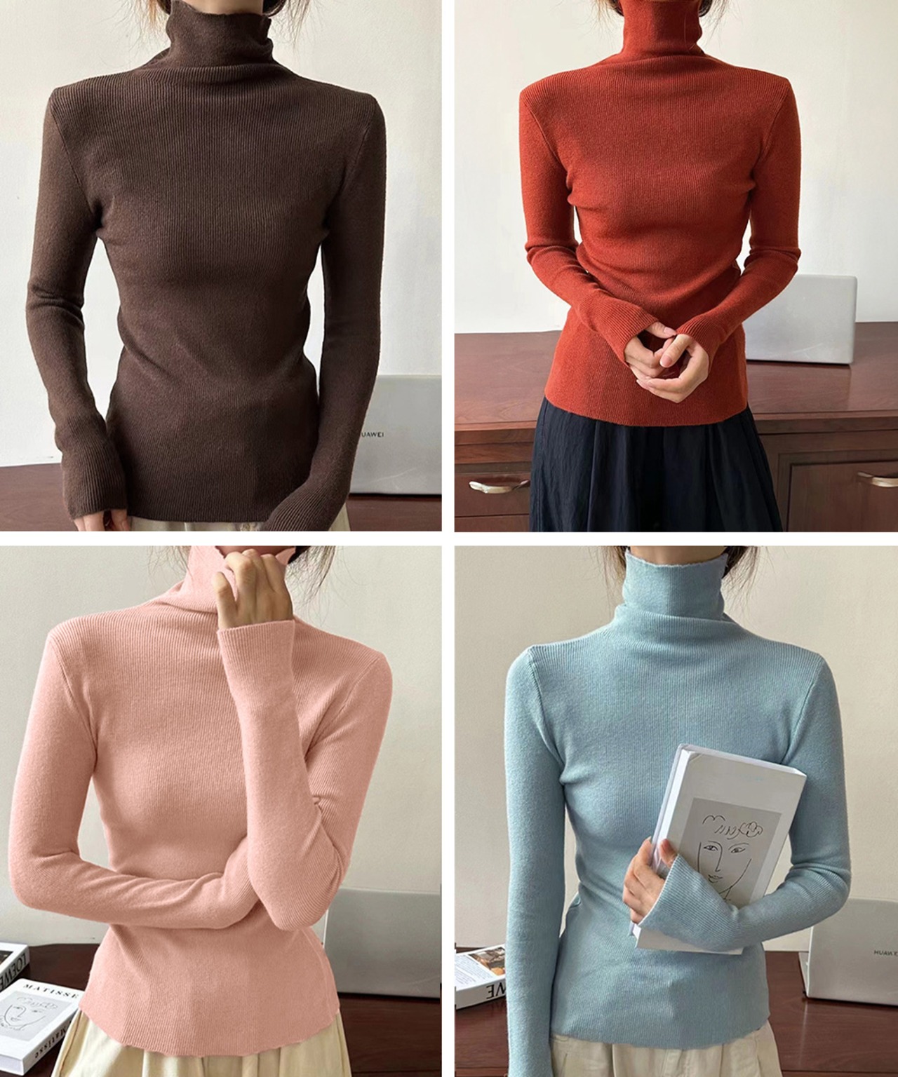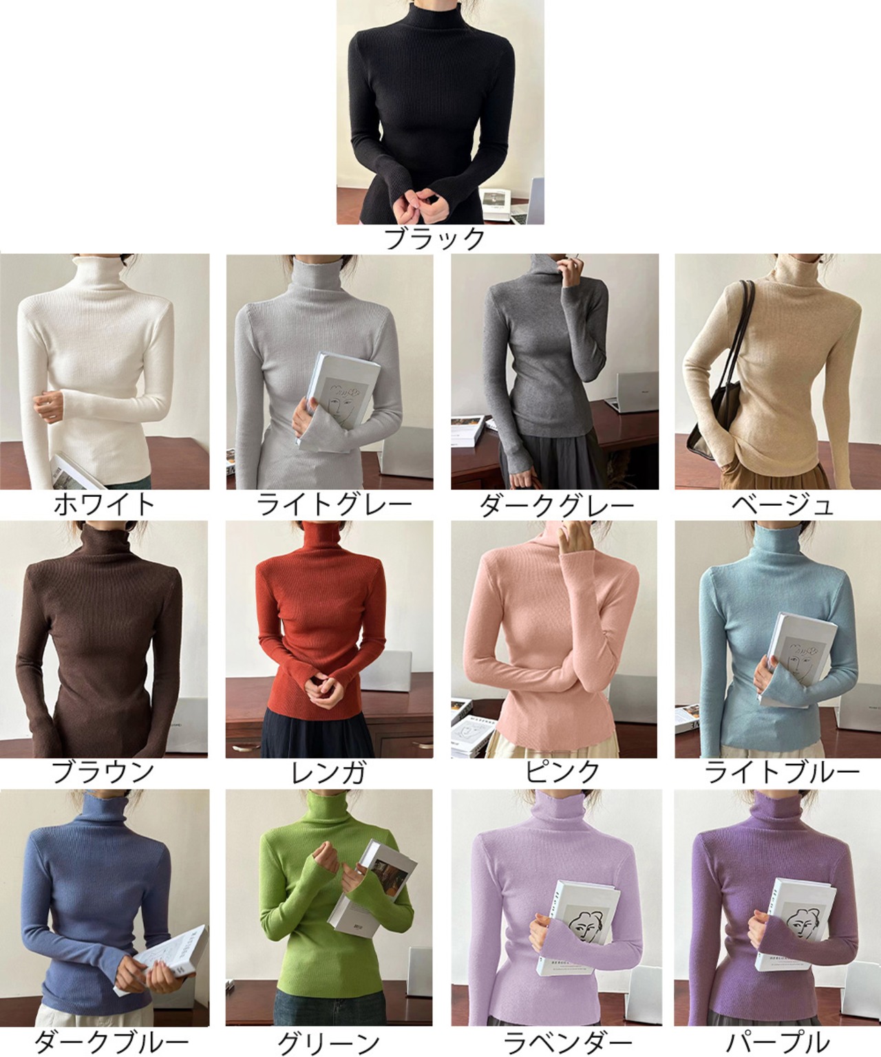 タートルネックリブニットとっくりセーター