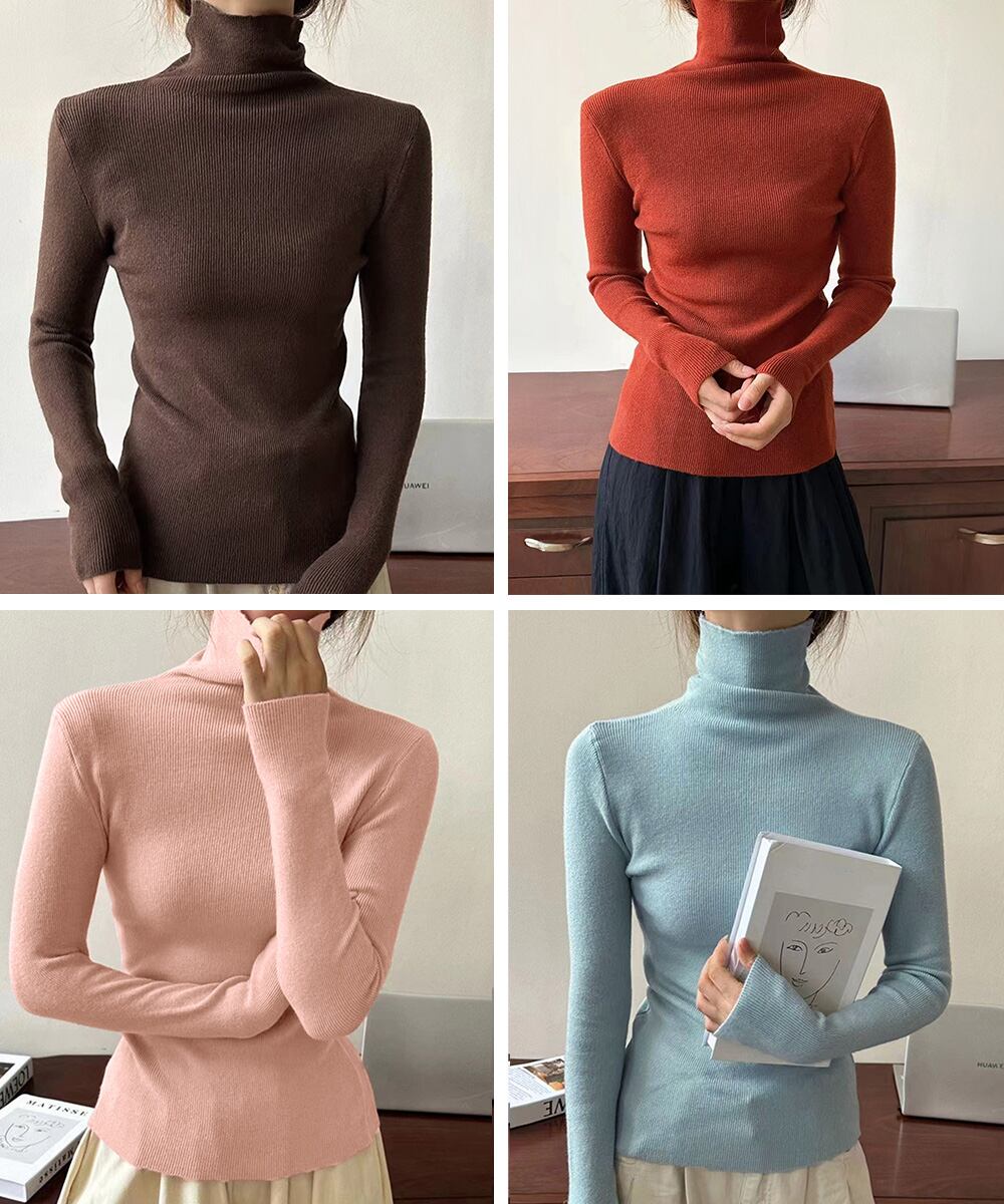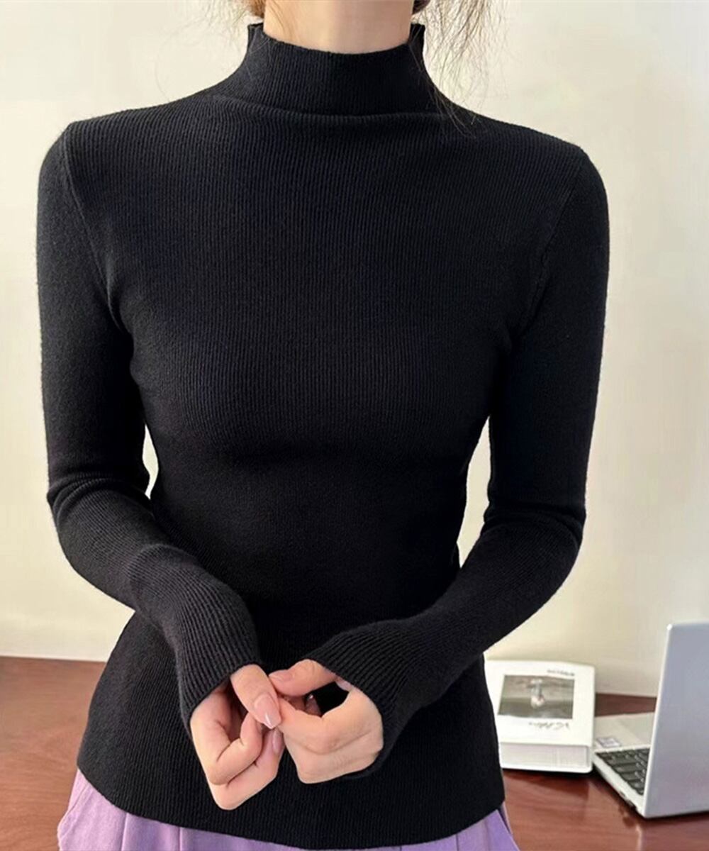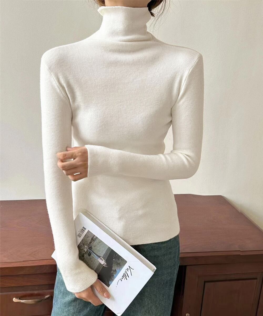 ハイネックニットレディース きれいめ 韓国風タイトニットソー着やせ 大人可愛いニット秋冬 シンプルニットインナーあったか