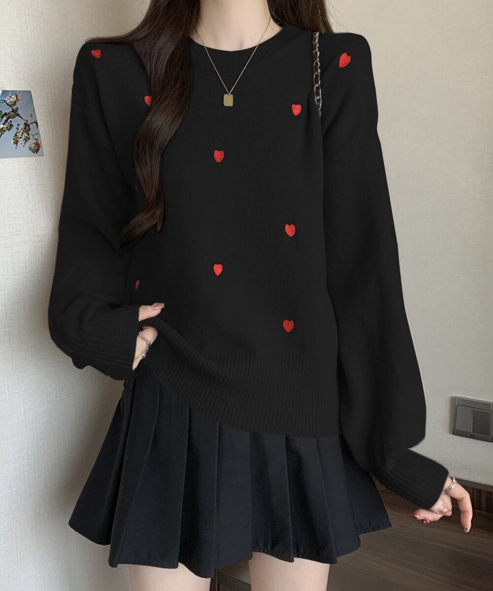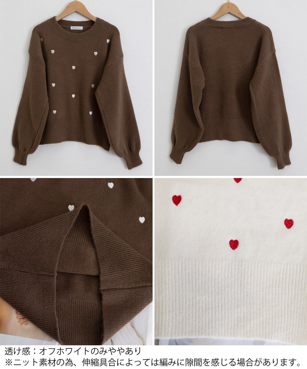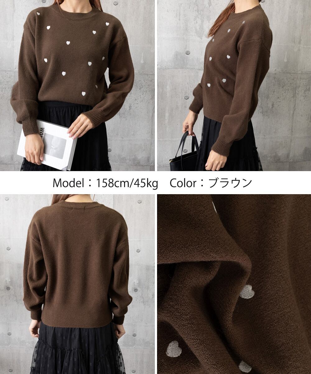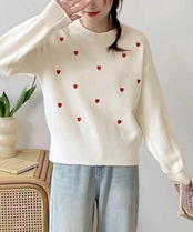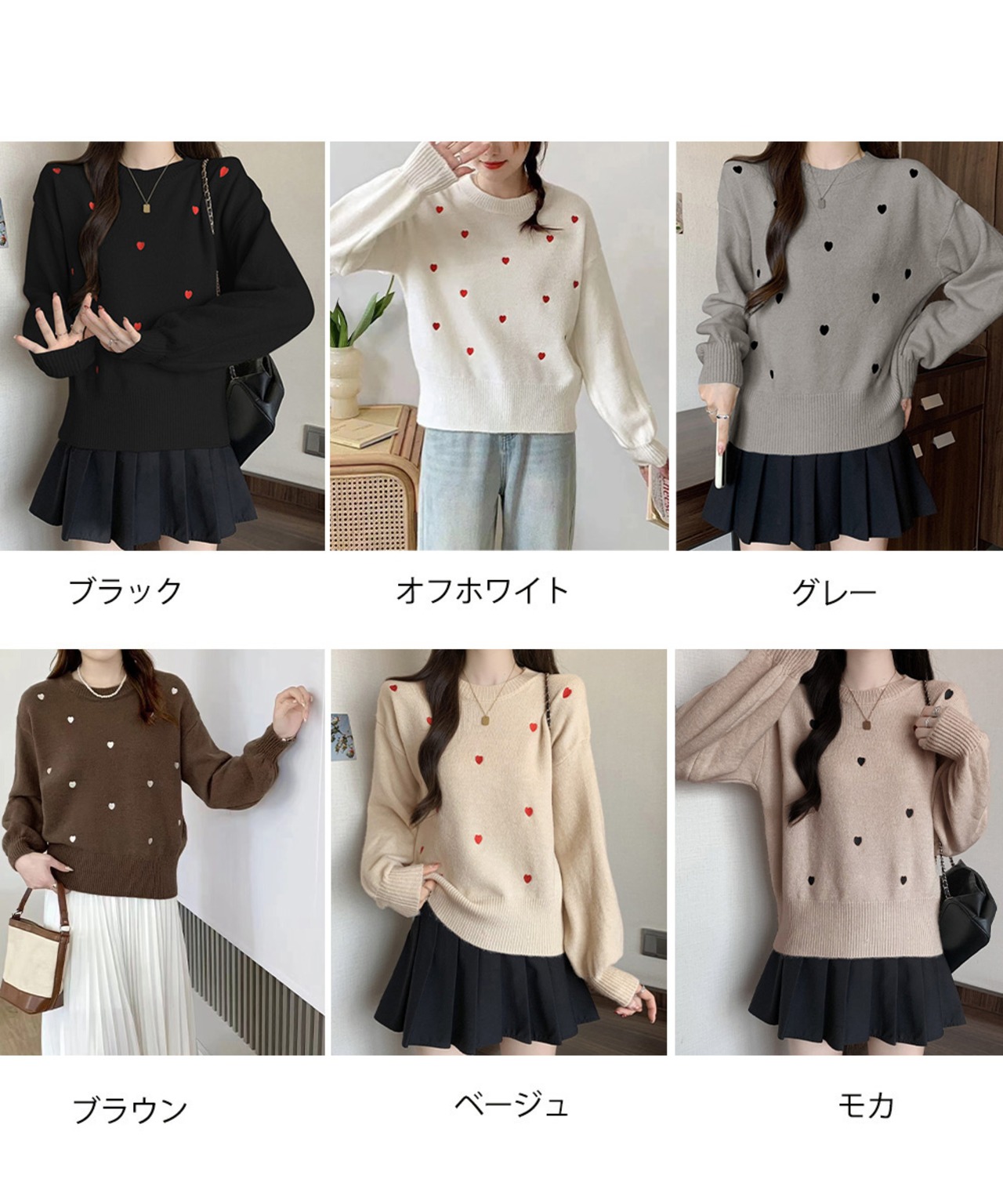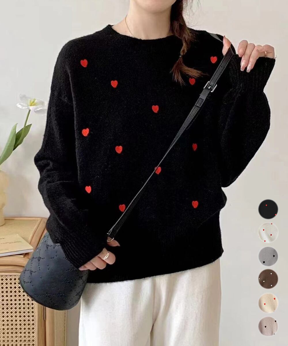 トレンドライクなハート柄がポップで可愛い印象のニットプルオーバー。