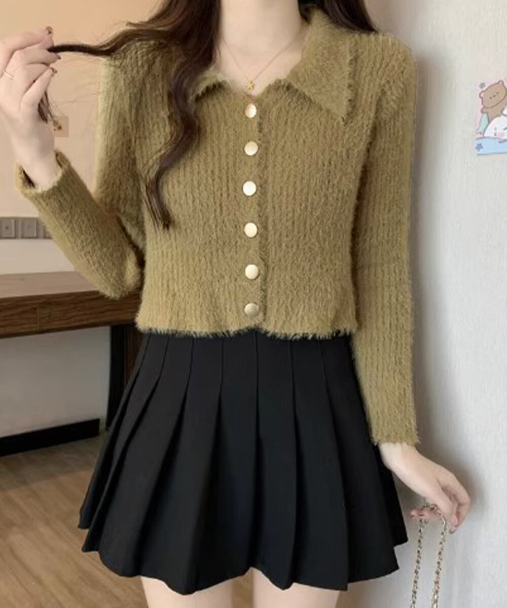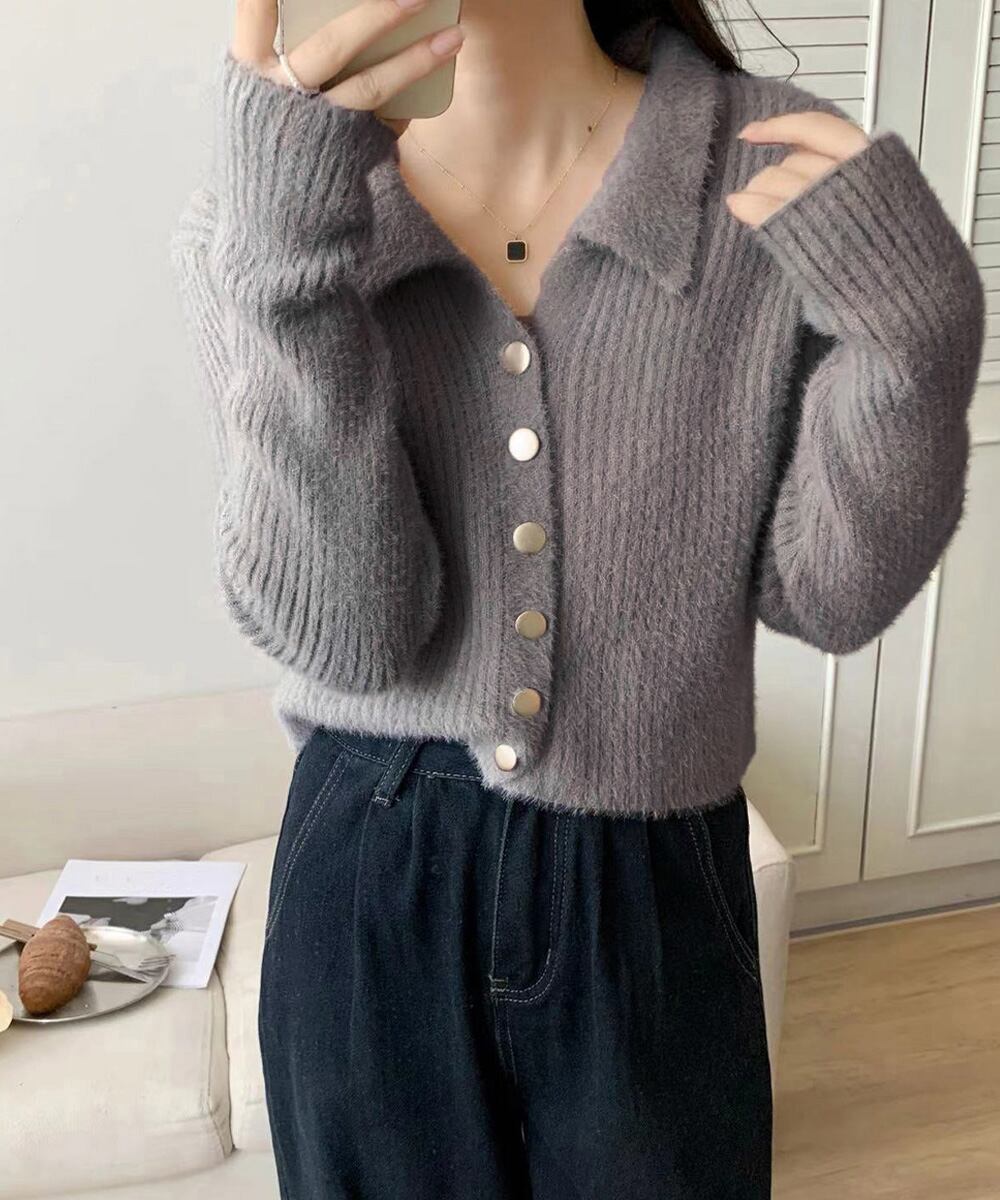 シャギーカーディガンゴールドボタン韓国風