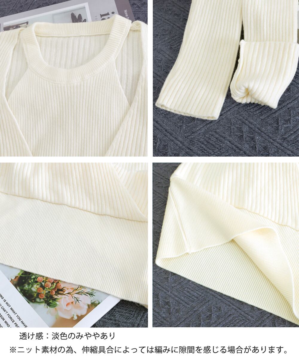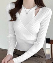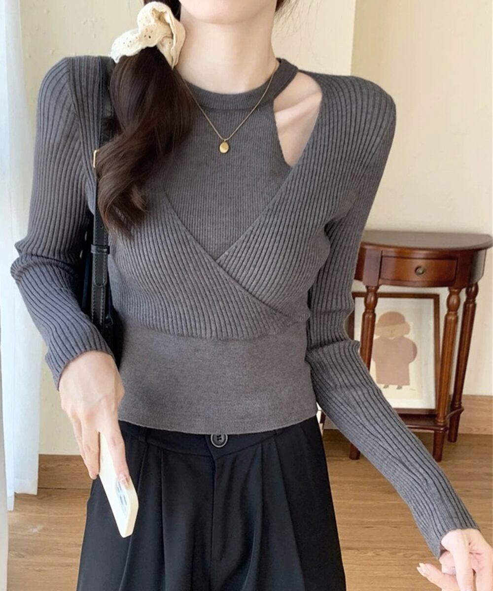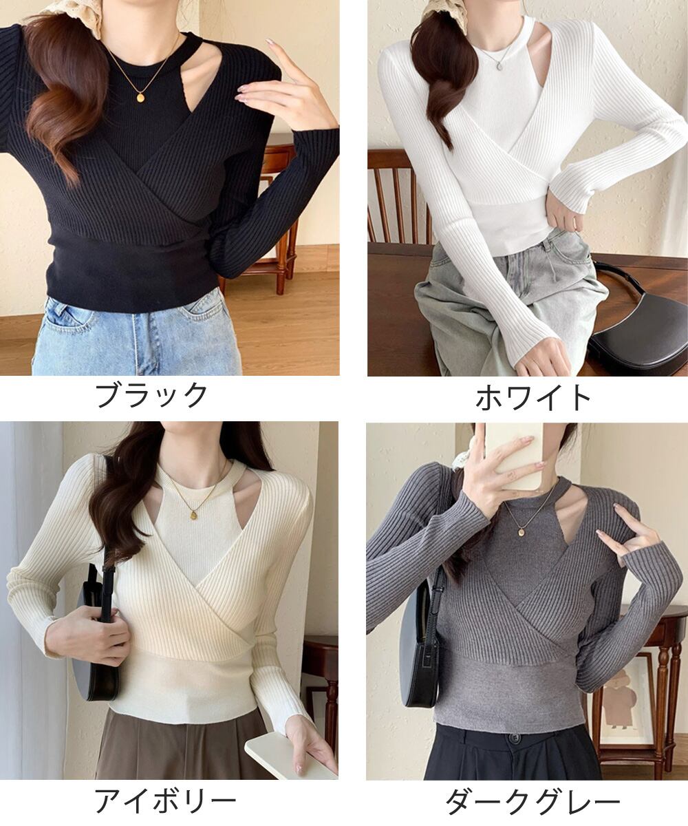 ニットウェア クロスデザイン リブニット ショート丈 着やせ服 ニットインナー 無地 韓国ファッション ニットセーター