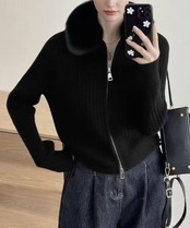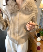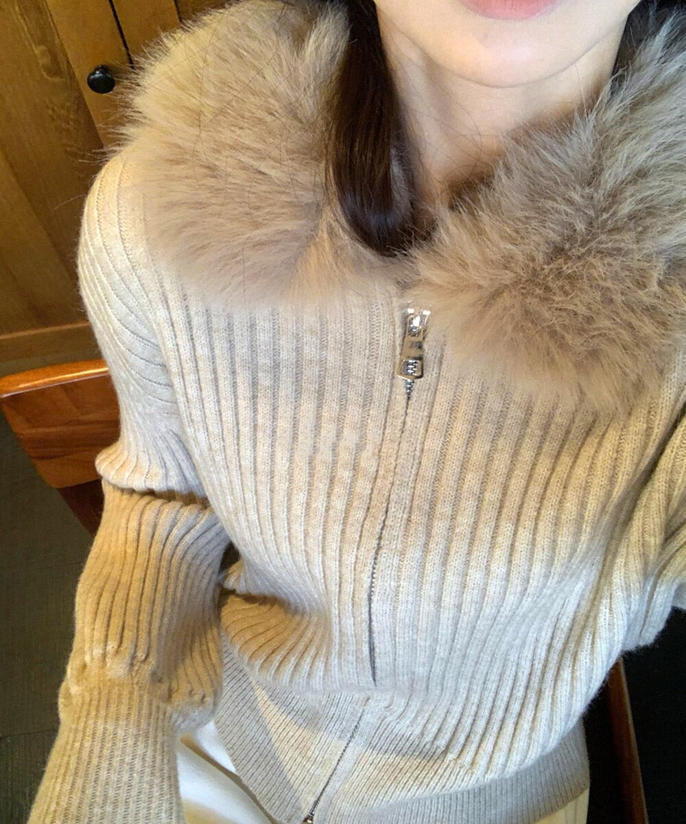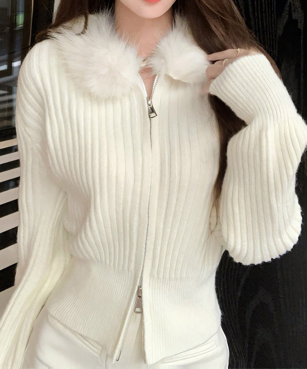 ファー襟ニットカーディガン ダブルジップ
