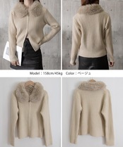 上品な雰囲気をまとえる、ふわふわのフェイクファーカラーが印象的なリブニットカーディガン。