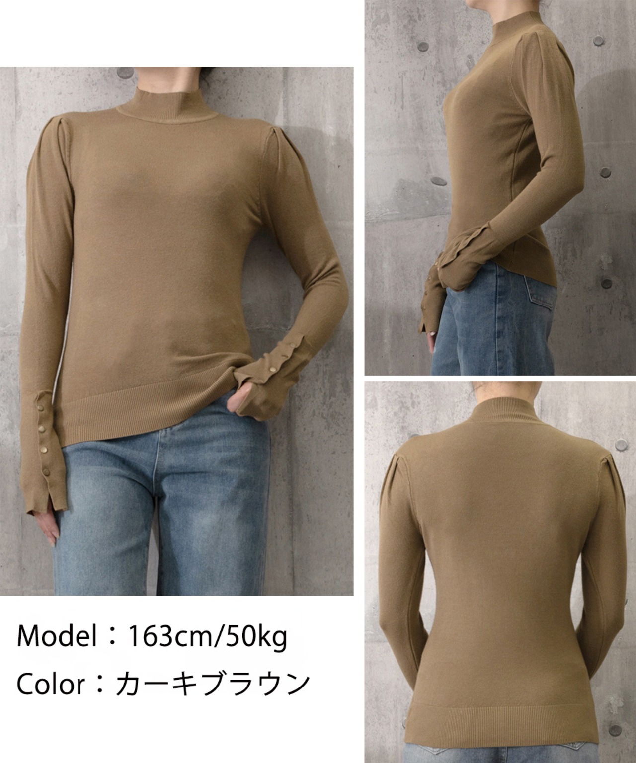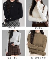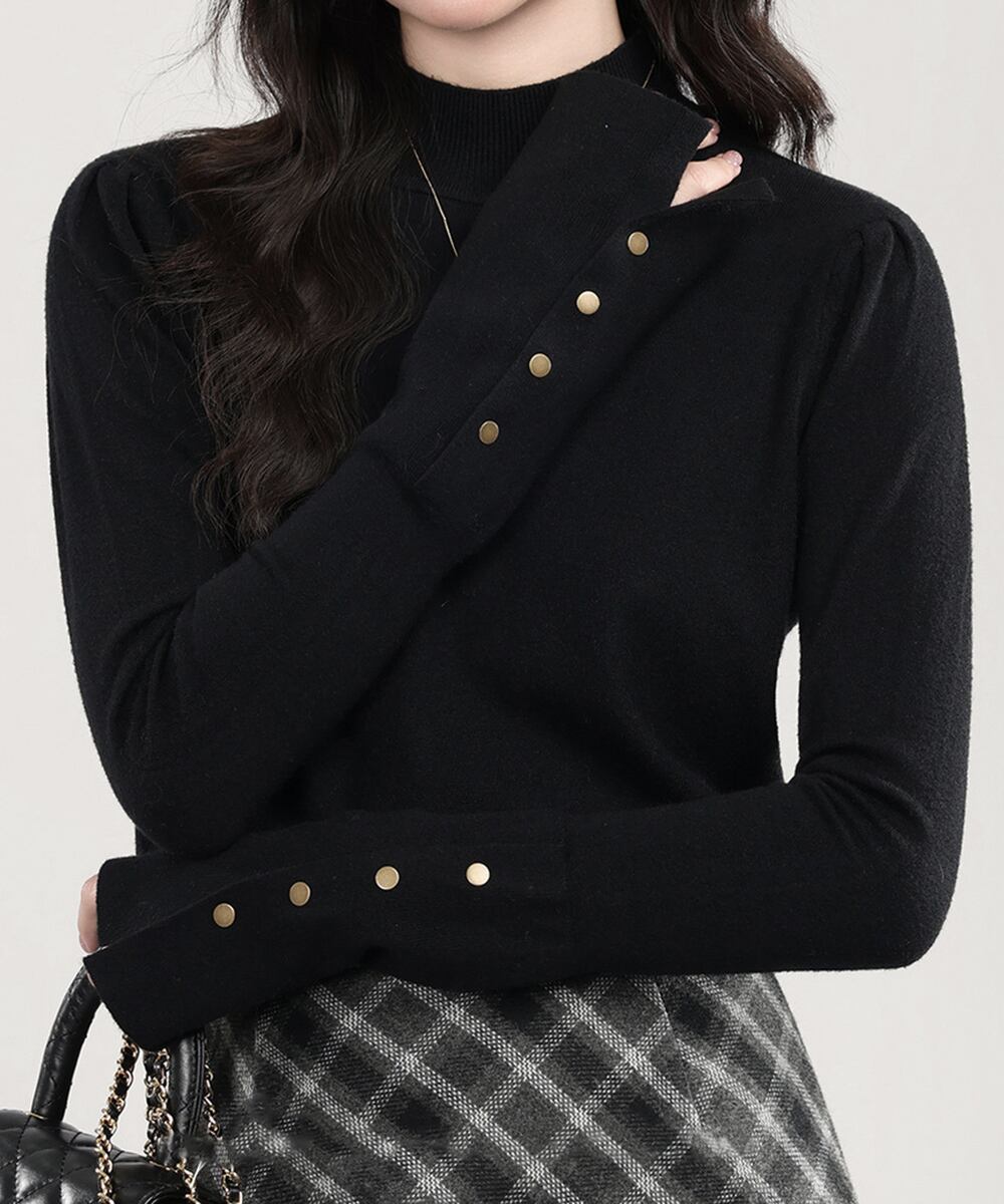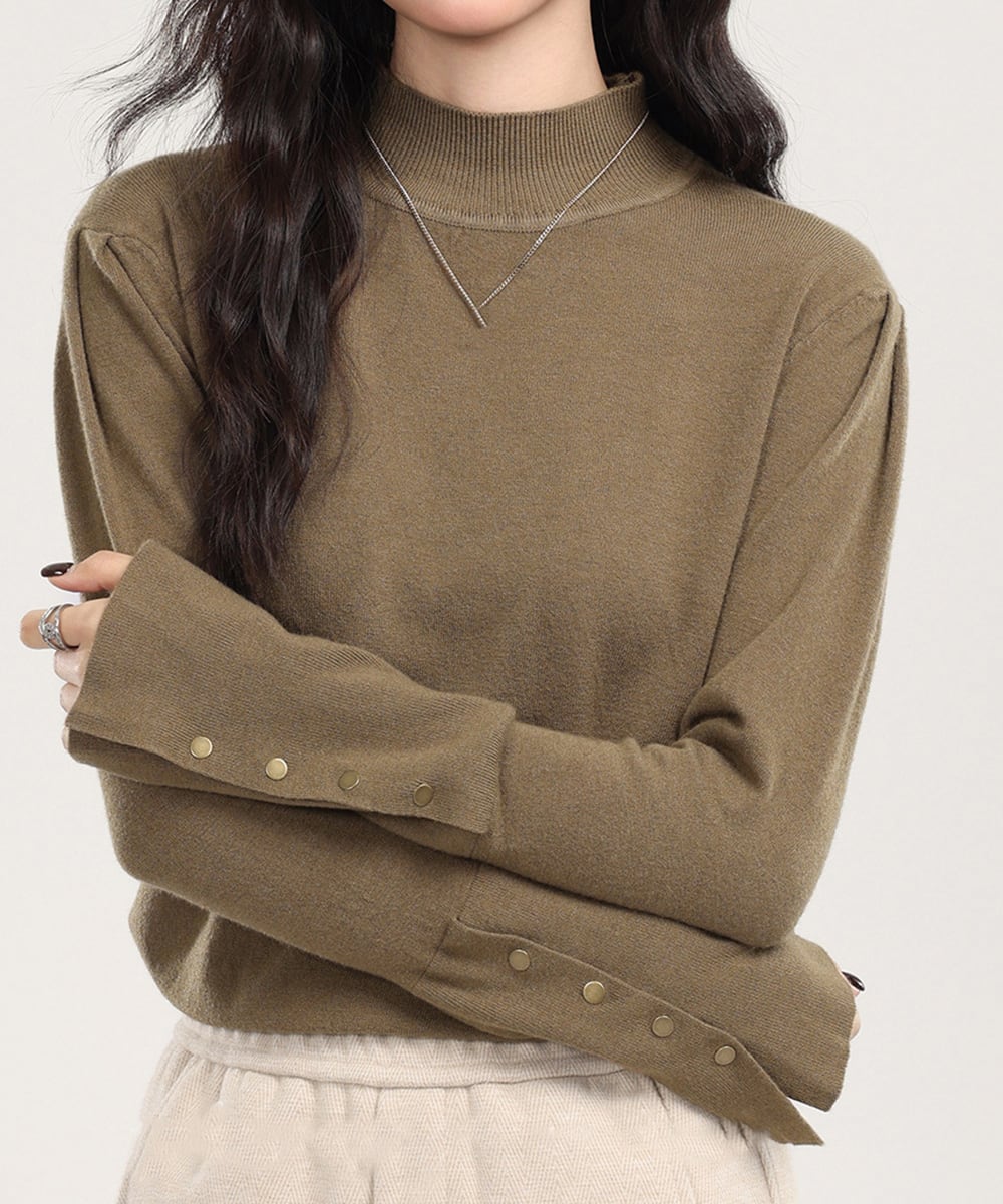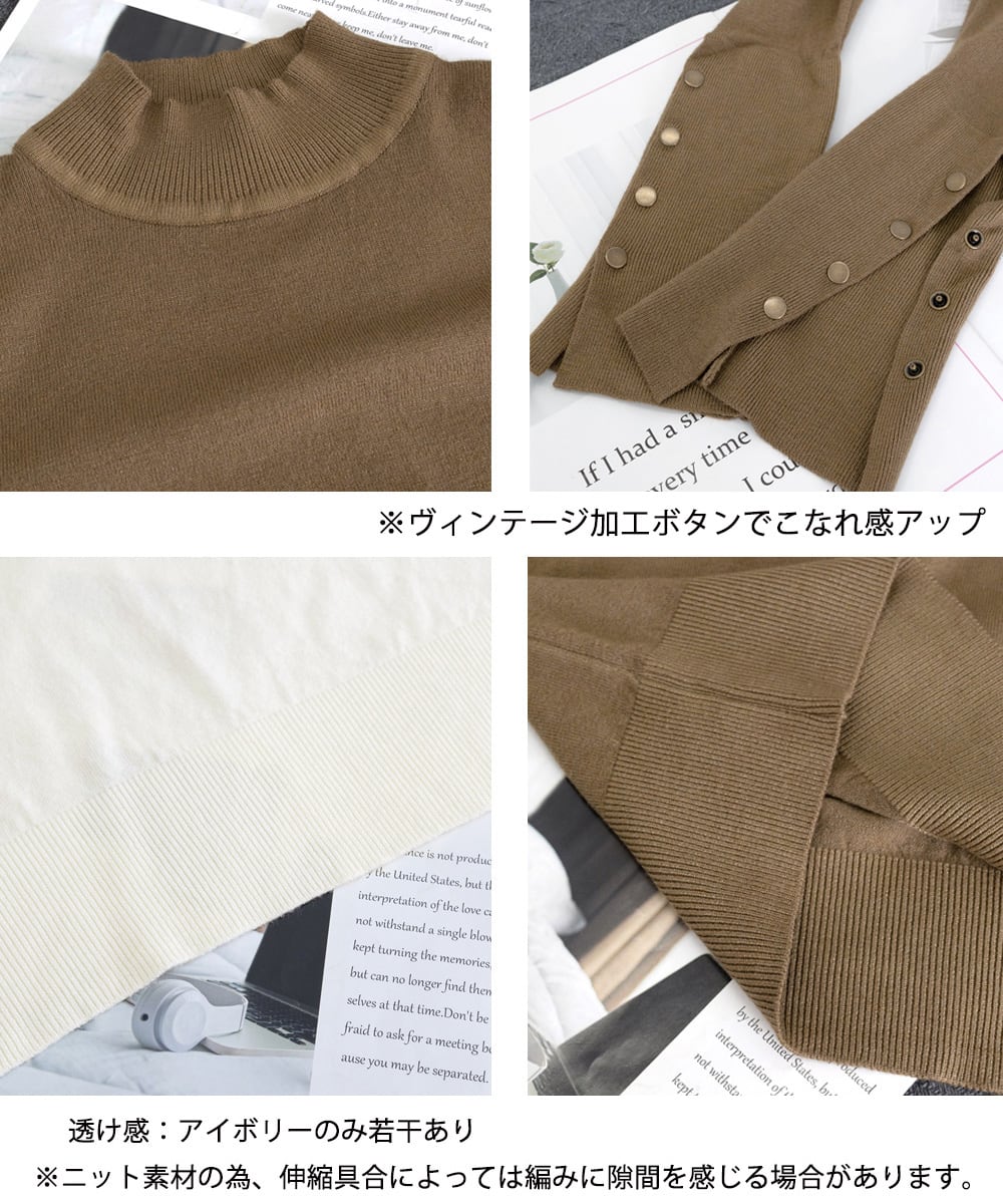 レディース リブニット キレイめ 袖ボタントップス 着回し 大人可愛い ニットウェア 韓国風 セーター 春秋冬 通勤通学