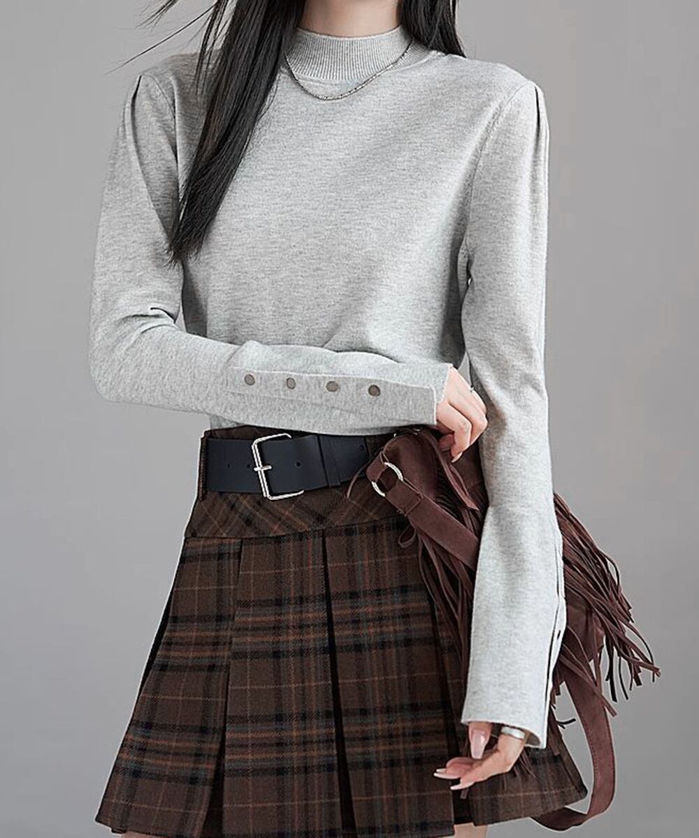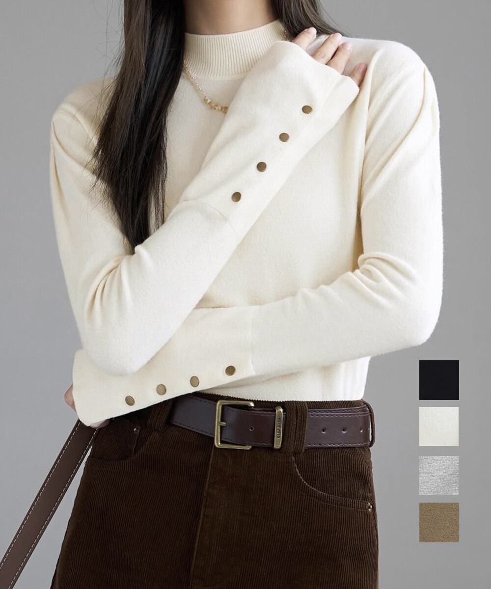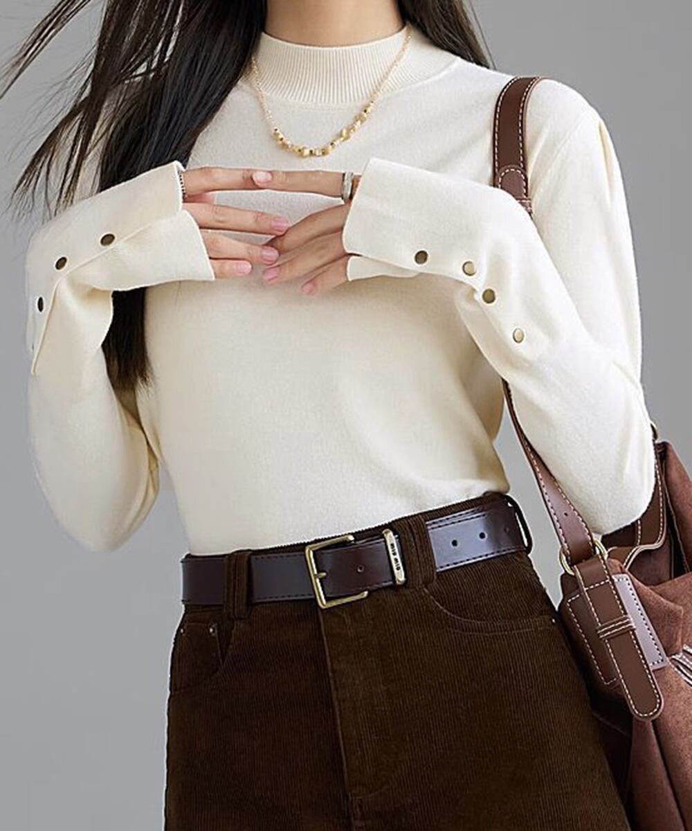 ニットトップス 長袖 ハイネック 重ね着