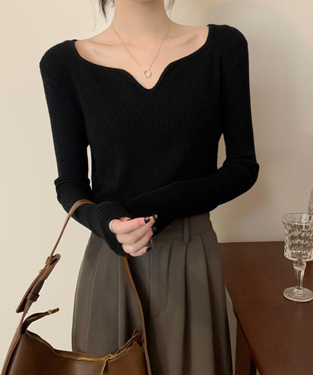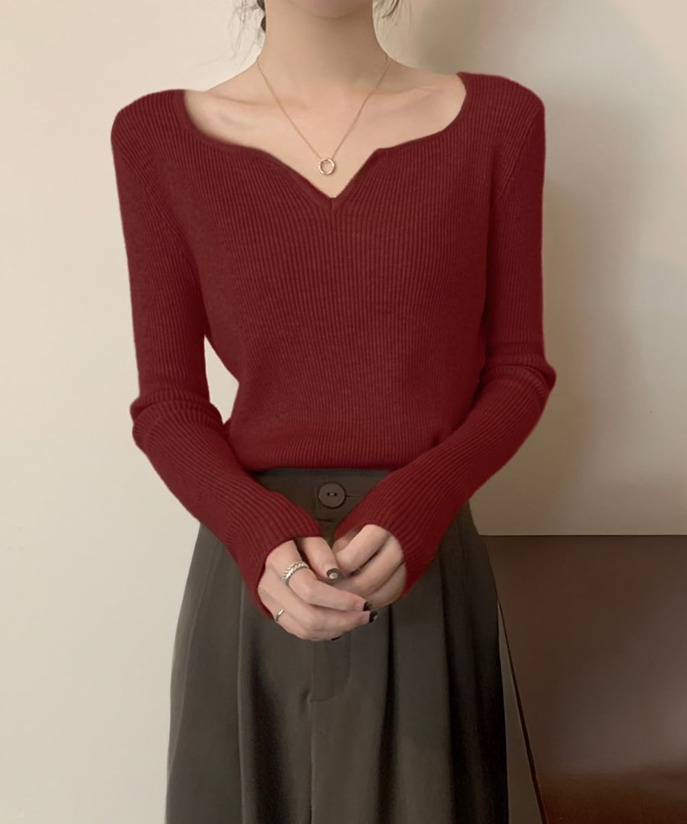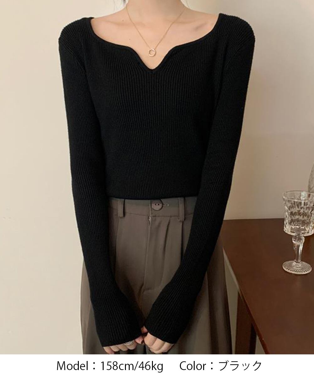 キーネック タイトリブニット 韓国風