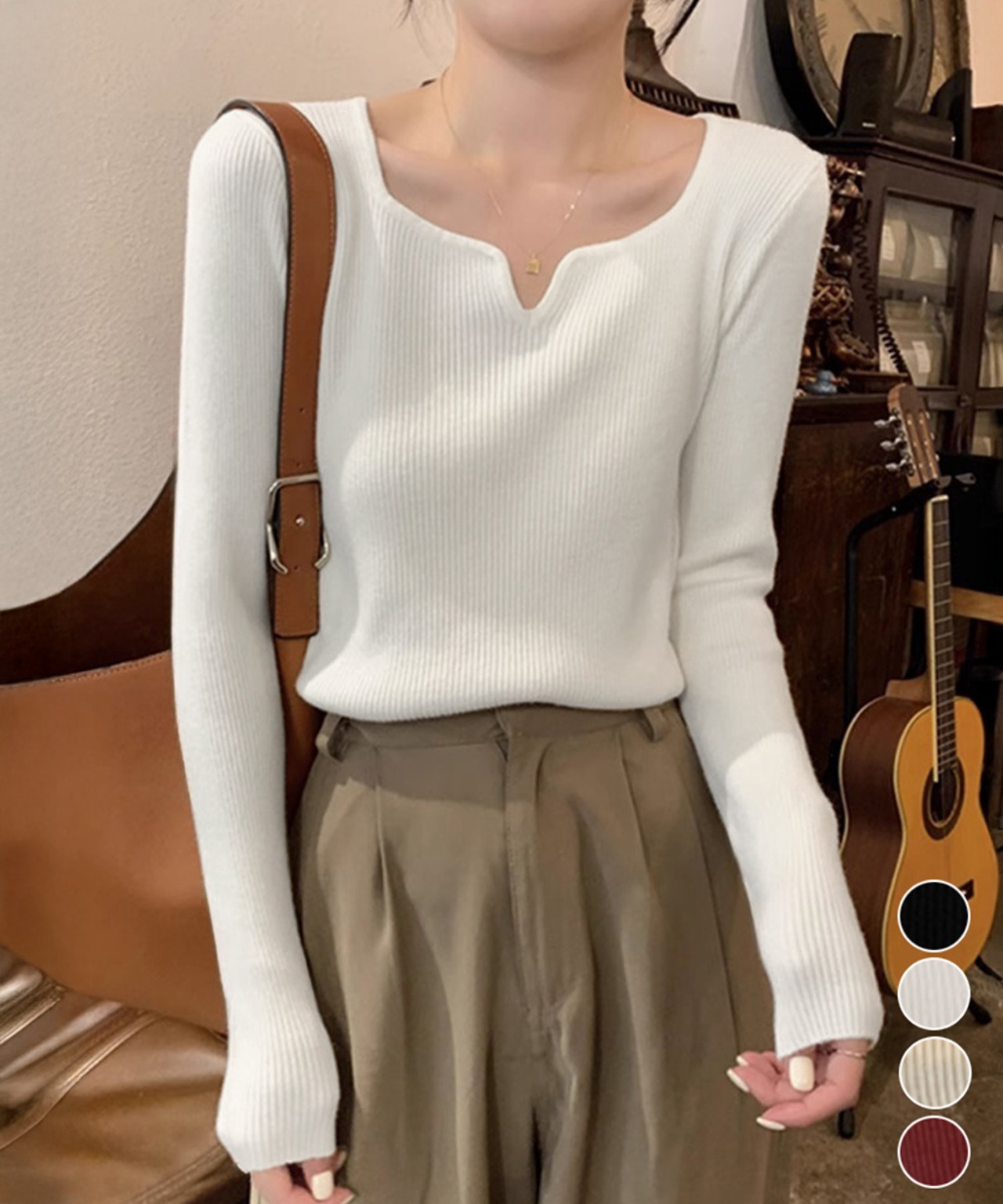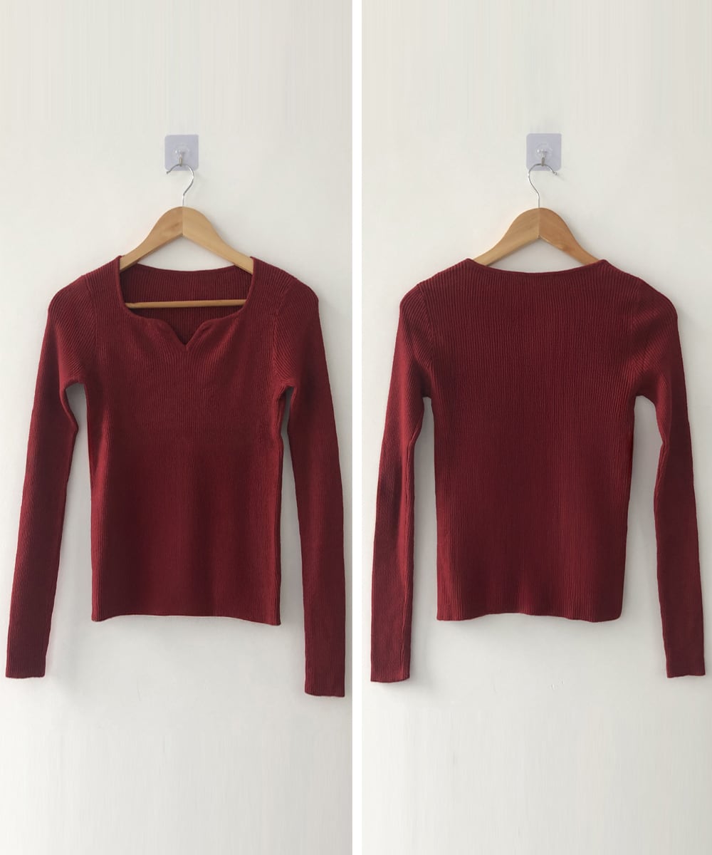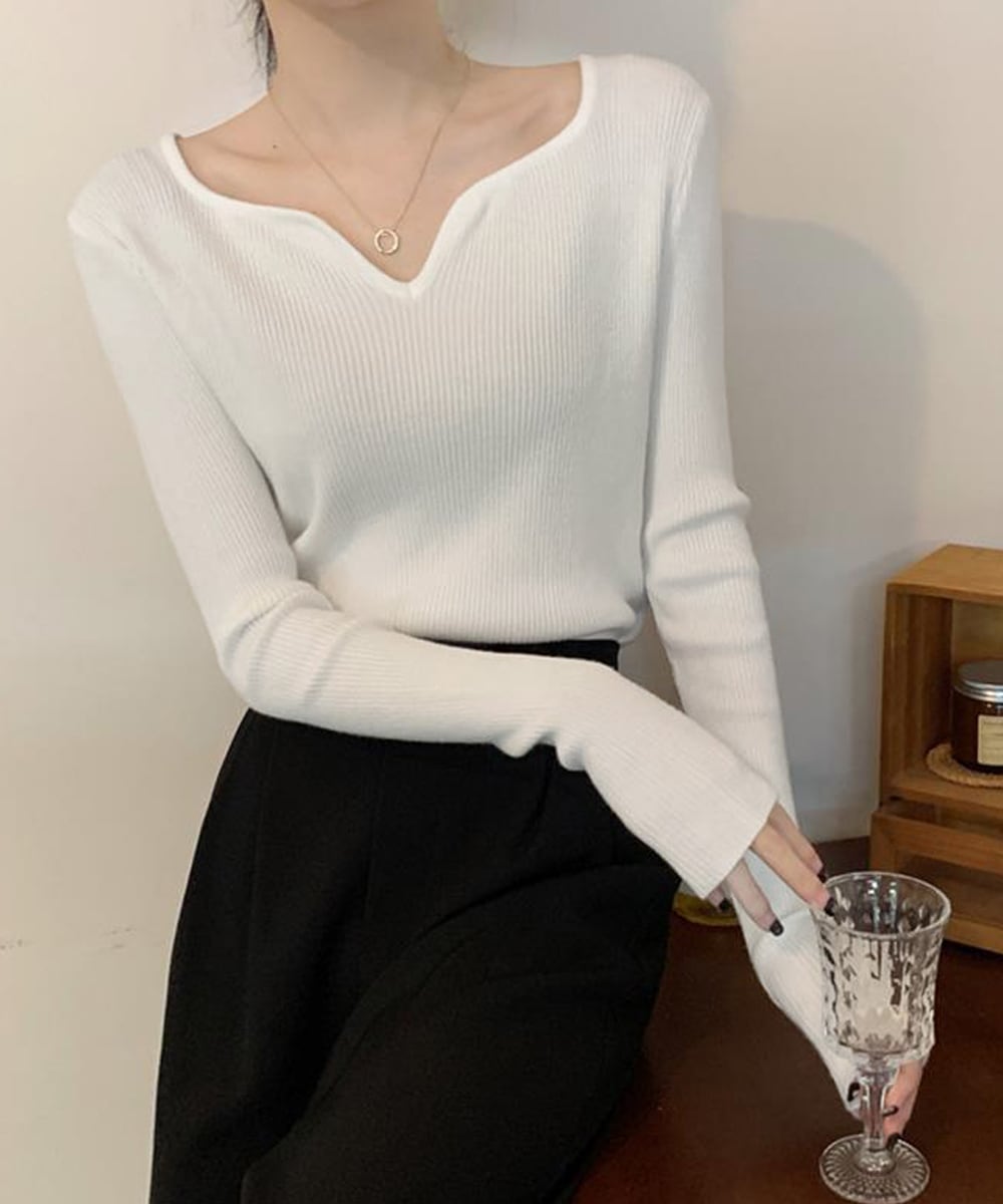 キーネック タイトリブニット 韓国風