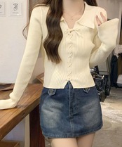 編み上げ長袖ニット ニットインナー大人 タイトニット柔らか
