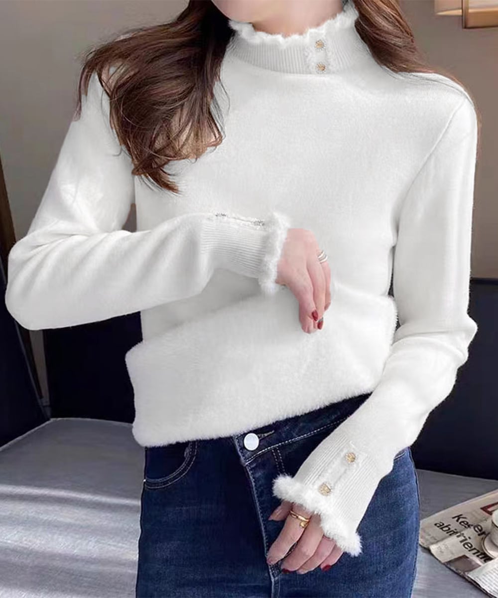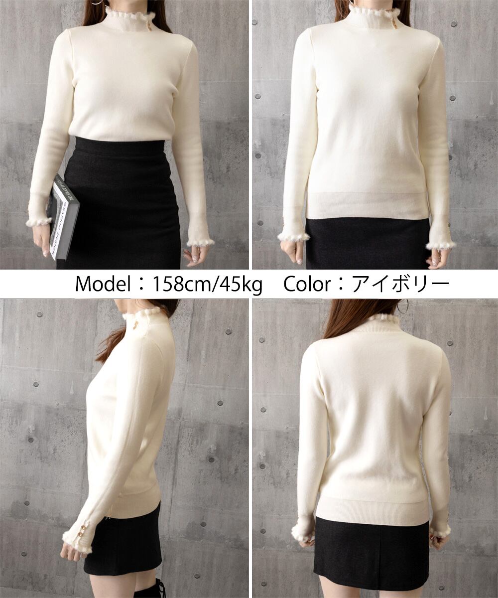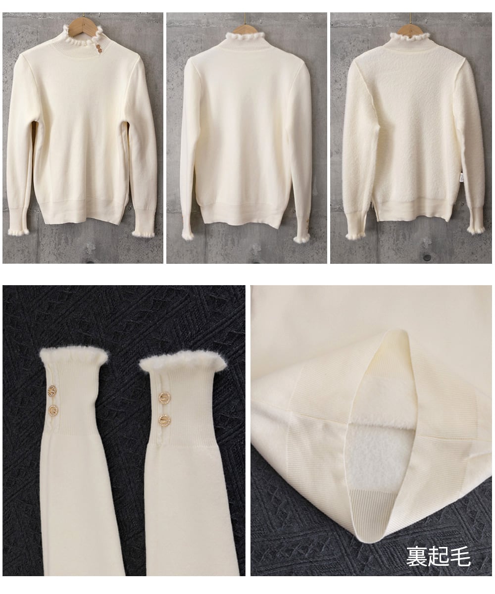 裏ファーニット防寒 フリルネックニット オフィスカジュアル