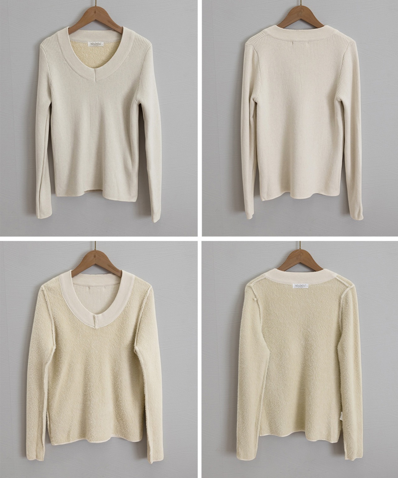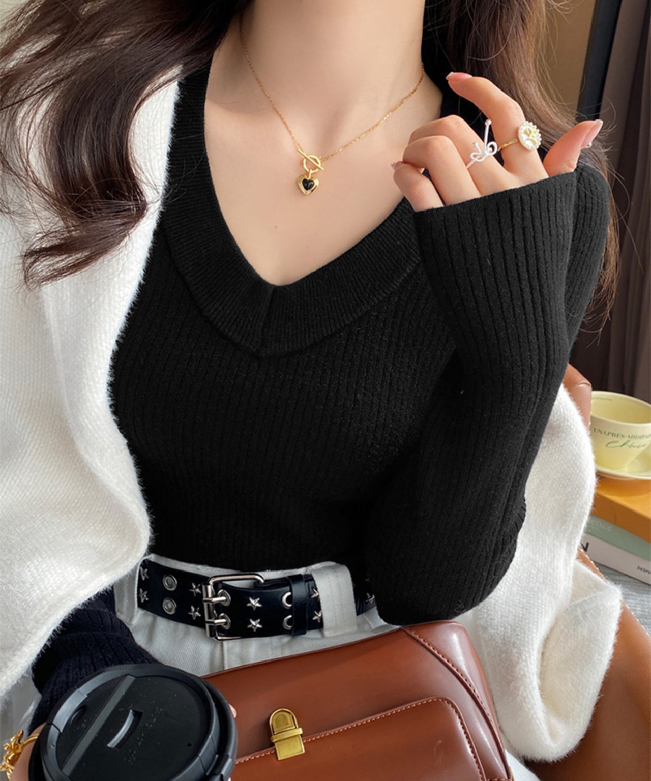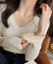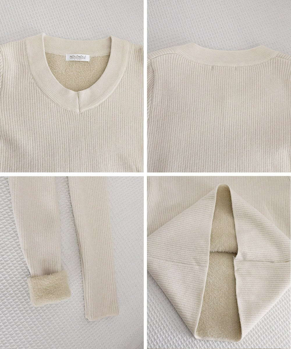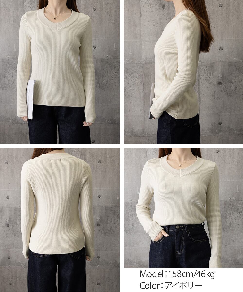 裏起毛ニットトップス Vネックリブニット
