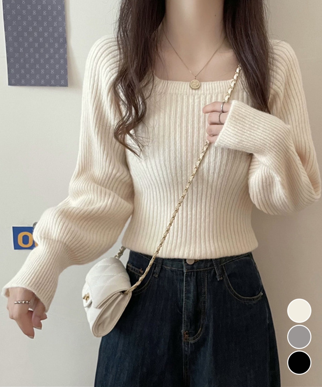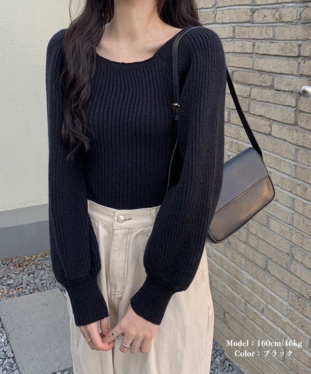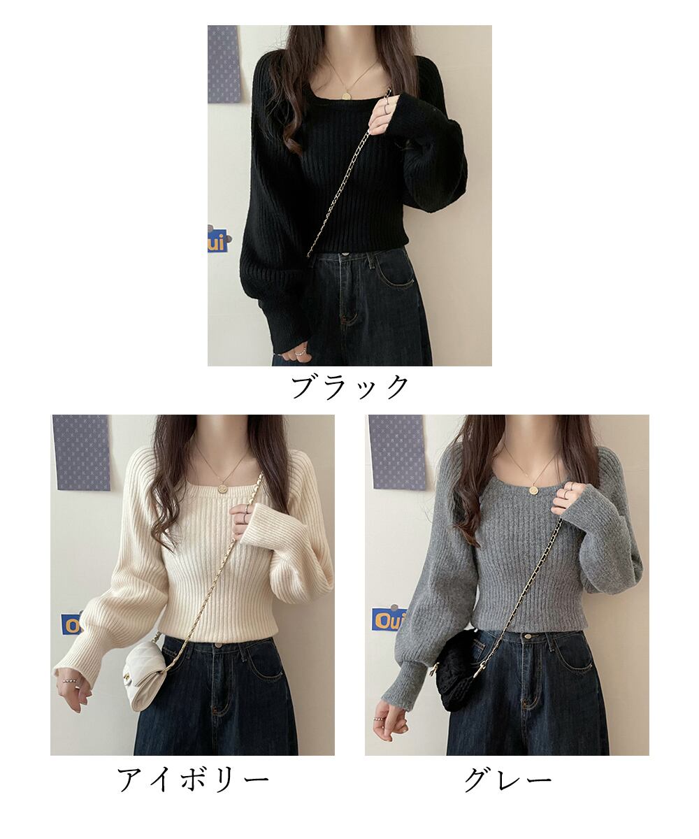 レディース スクエアネック 無地 着やせニットウェア オフィスカジュアル 大人可愛い ニットソー おしゃれ通勤 女子会服
