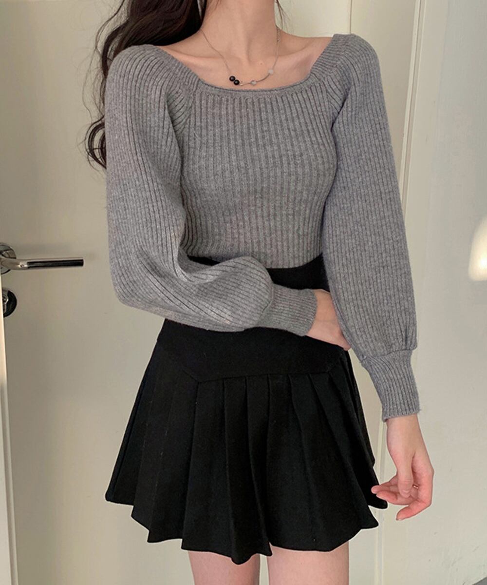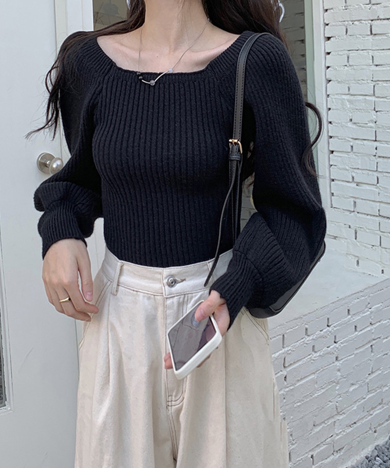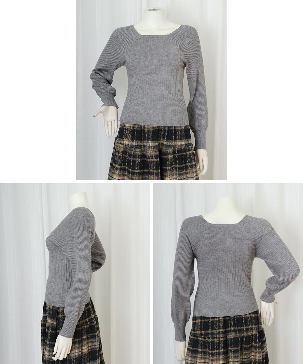 レディース スクエアネック 無地 着やせニットウェア オフィスカジュアル 大人可愛い ニットソー おしゃれ通勤 女子会服