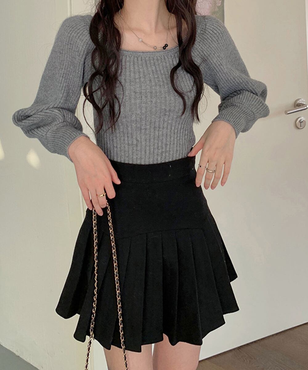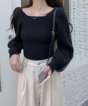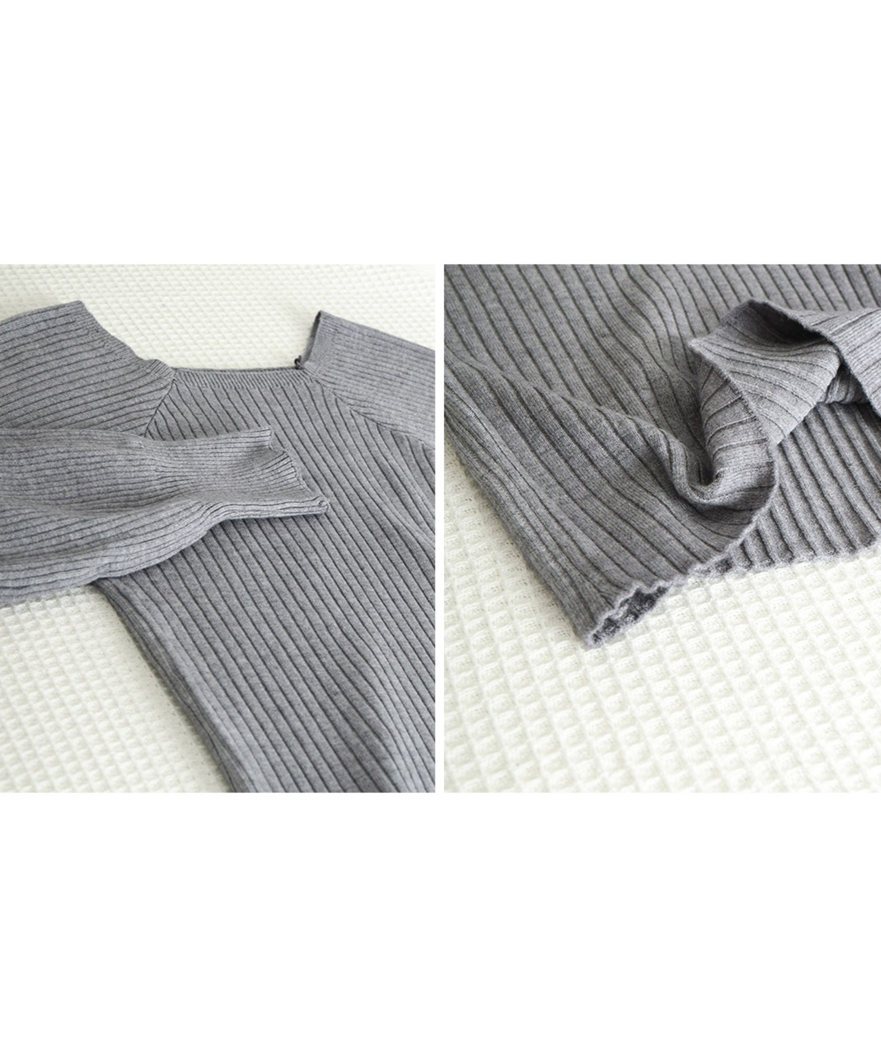 ニットトップス新作 シンプルリブニット プルオーバー秋冬