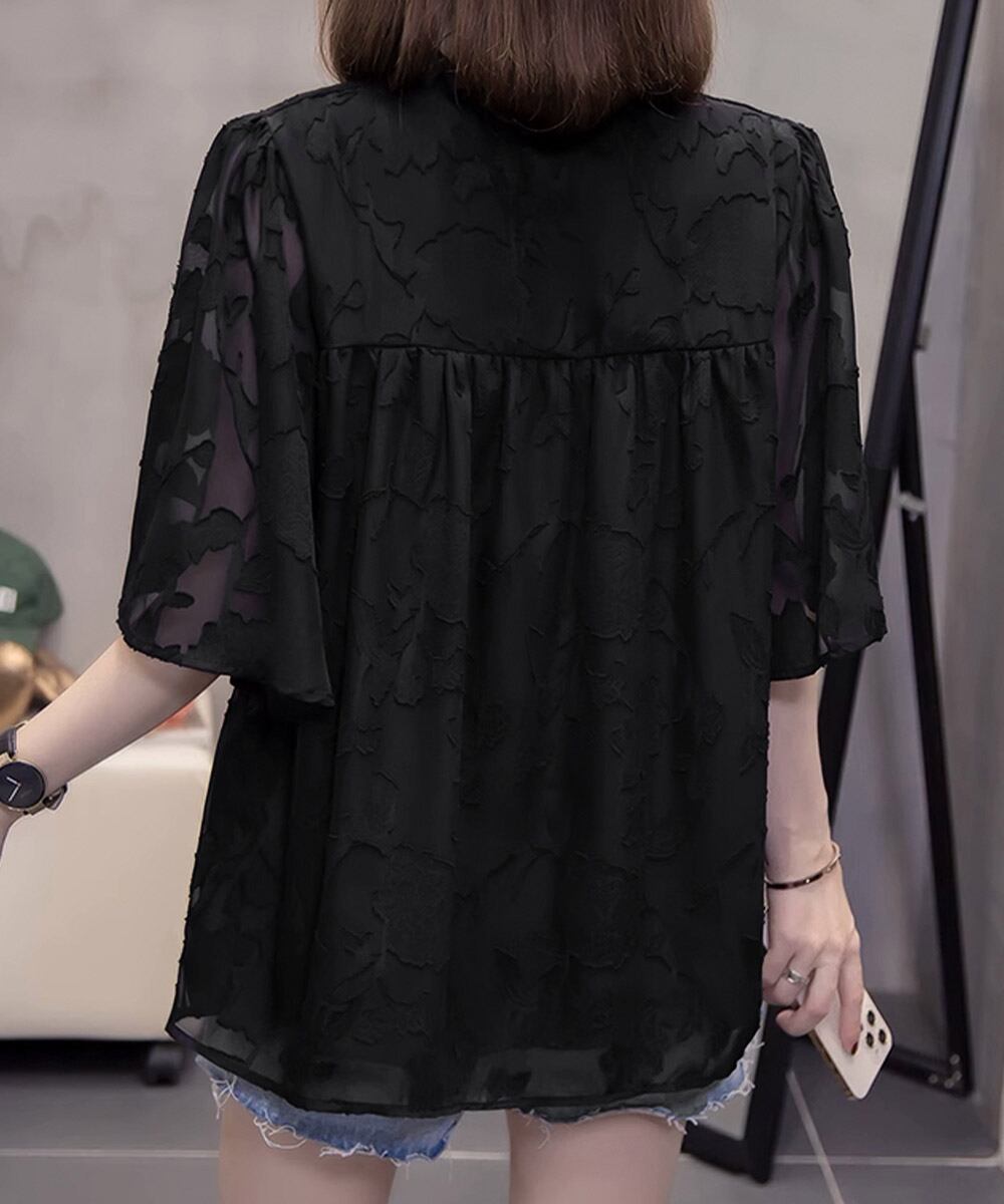 レディース 半袖薄手 シャツブラウス 体型カバートップス きれいめ 大人可愛い フェミニン服 着やせ 人気ゆったりシャツ
