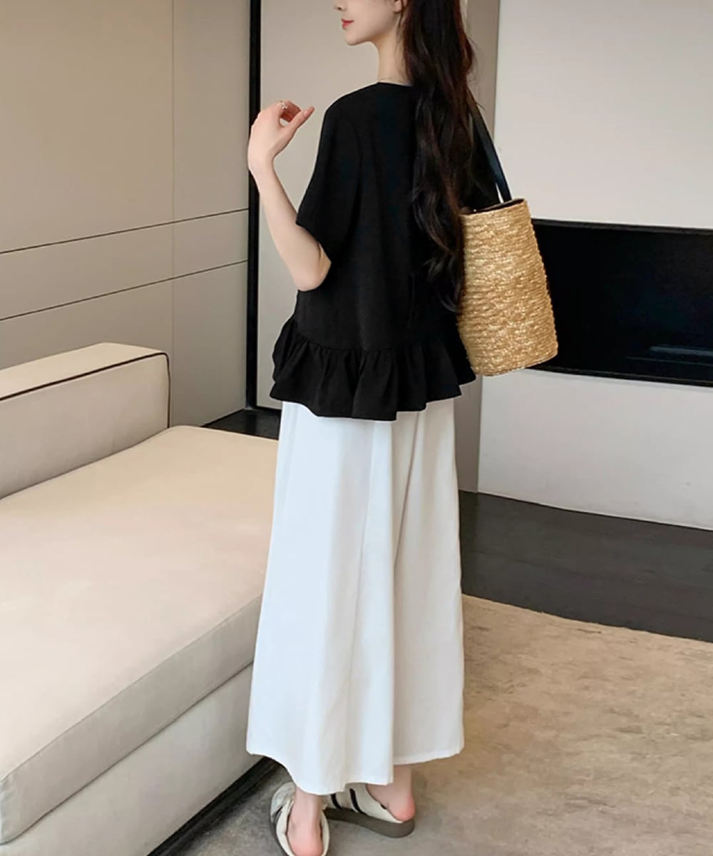 韓国風ゆるトップス 半袖大人夏服涼しげ ゆったりシルエット