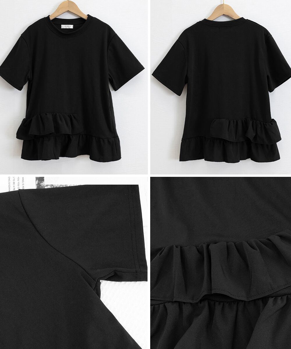 レディース 大人可愛いカットソー 体型カバー フリルギャザートップス 着やせペプラムブラウス おしゃれ裾フレアカットソー