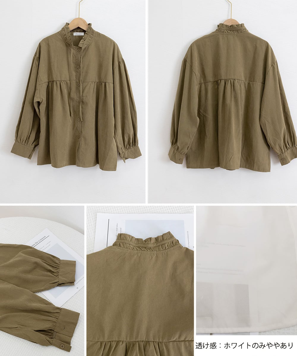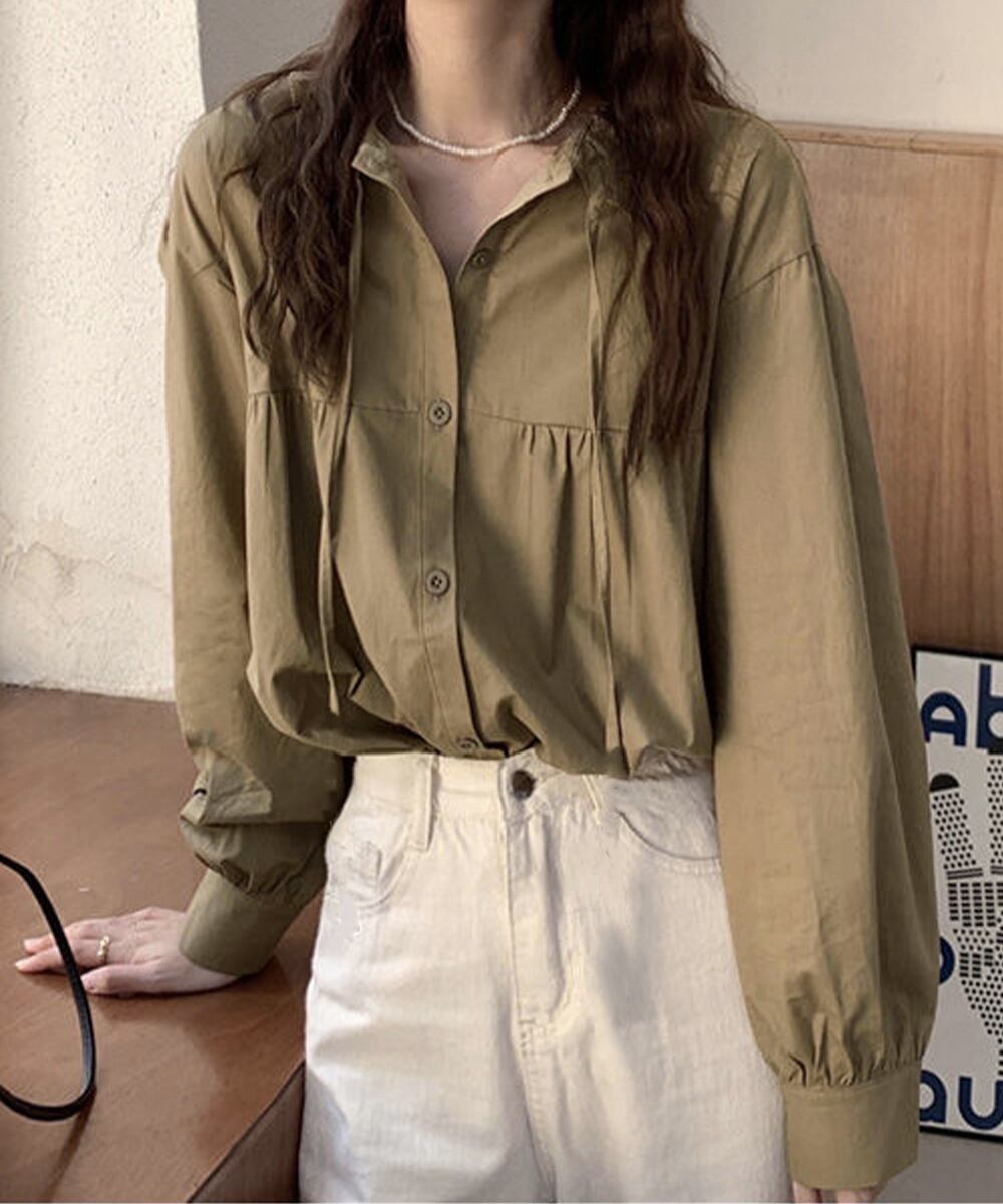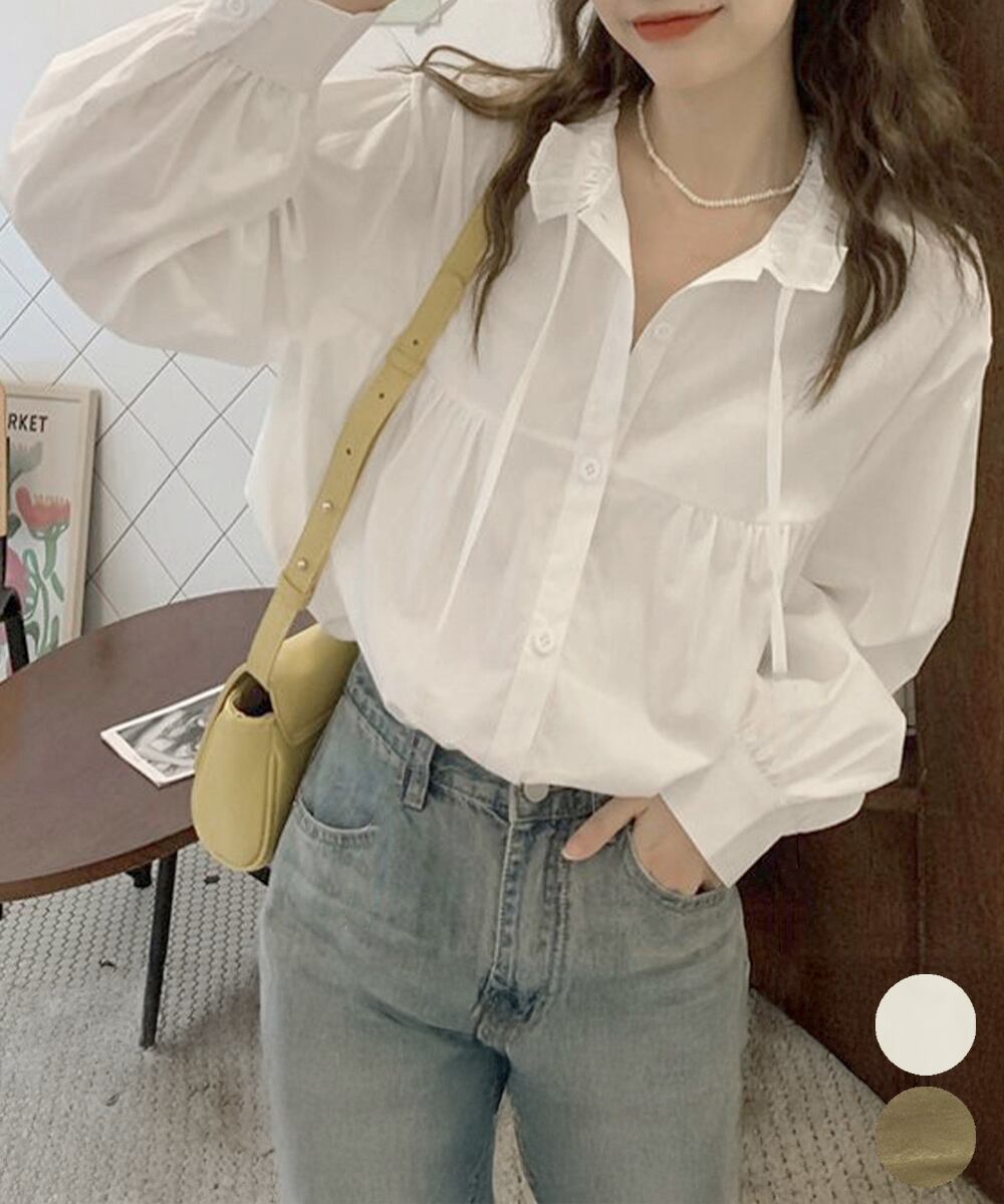 フリル衿ブラウス 長袖タックシャツ韓国風
