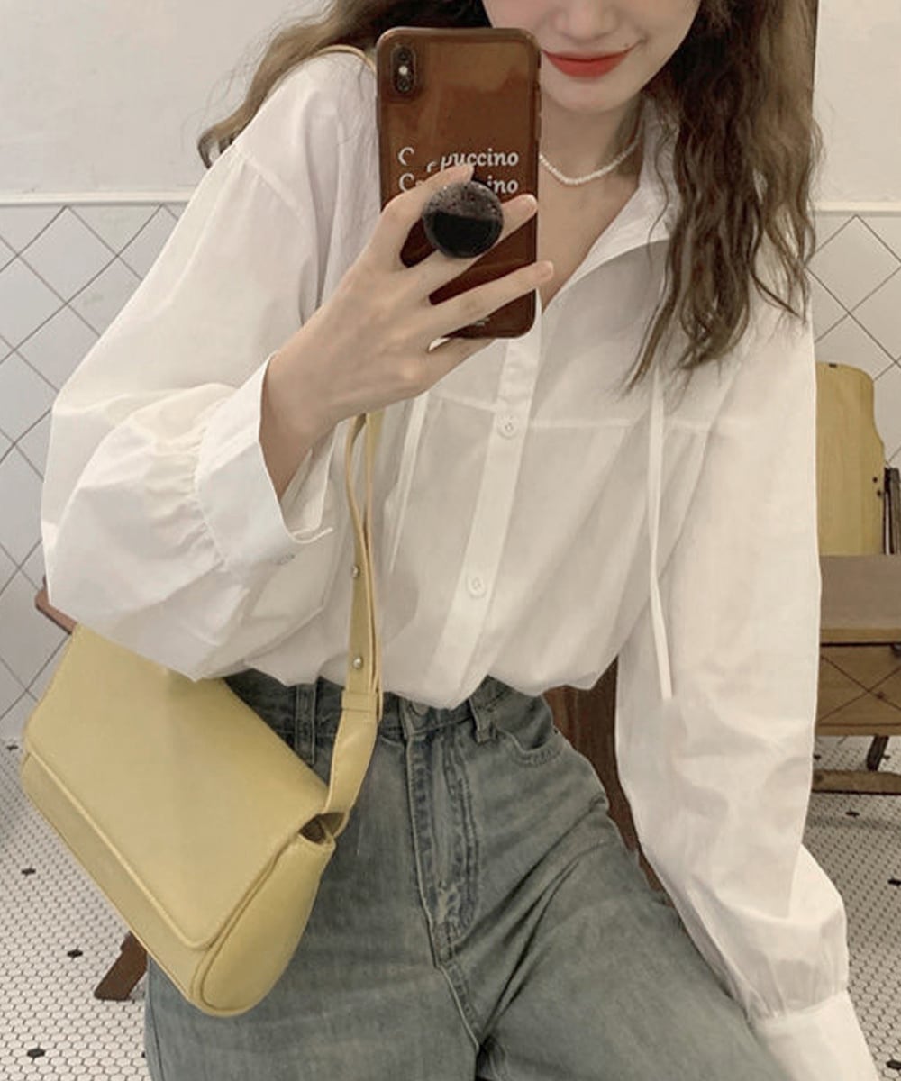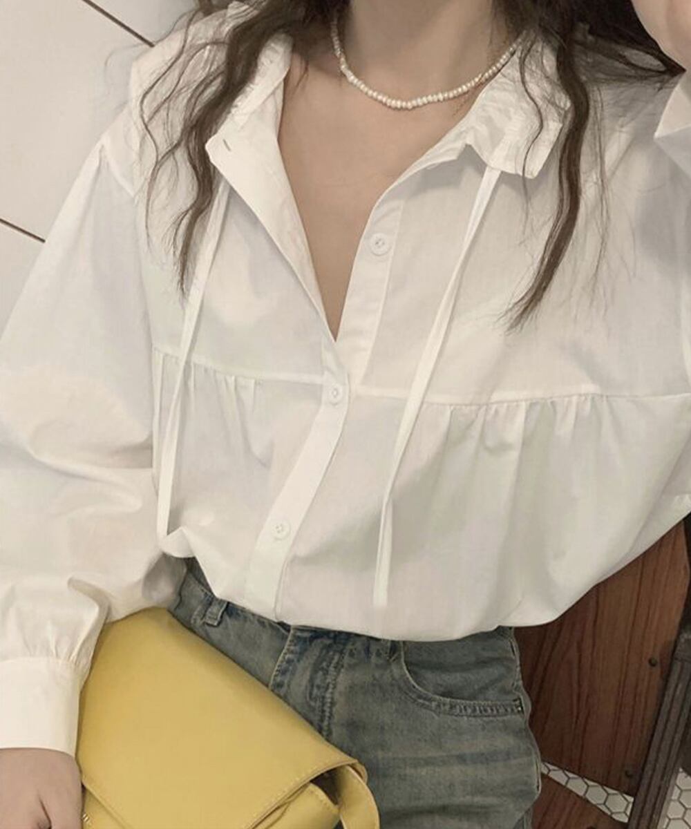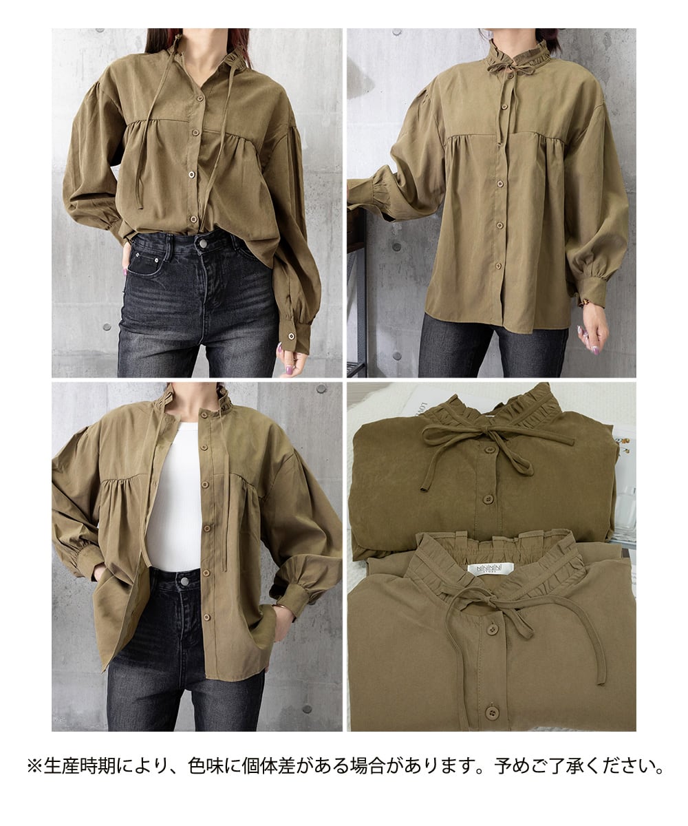 フリル衿ブラウス 長袖タックシャツ韓国風