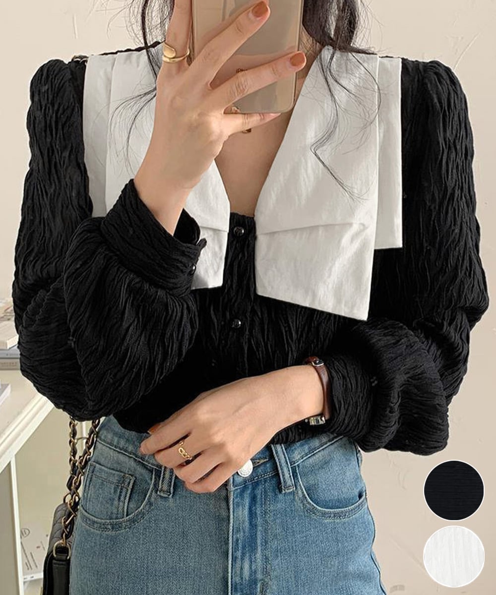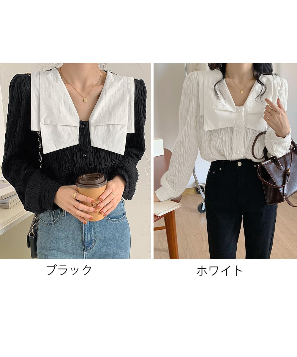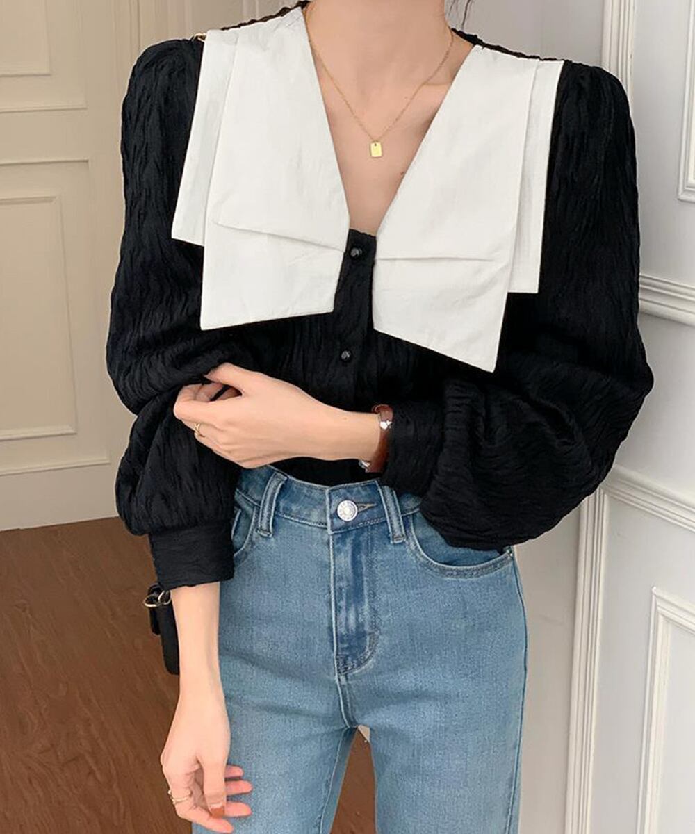 ビッグカラー ワッシャーブラウス 韓国風