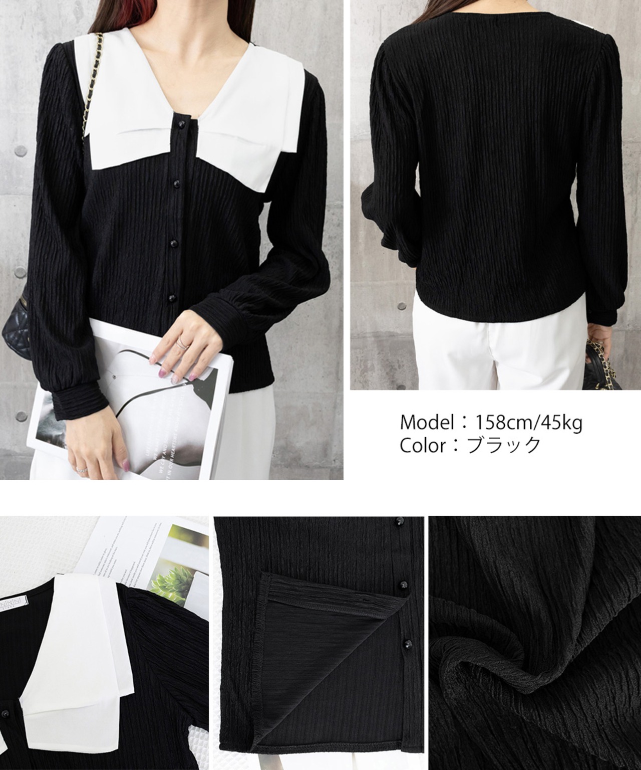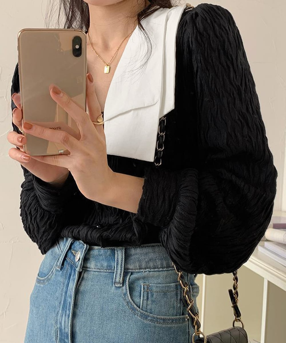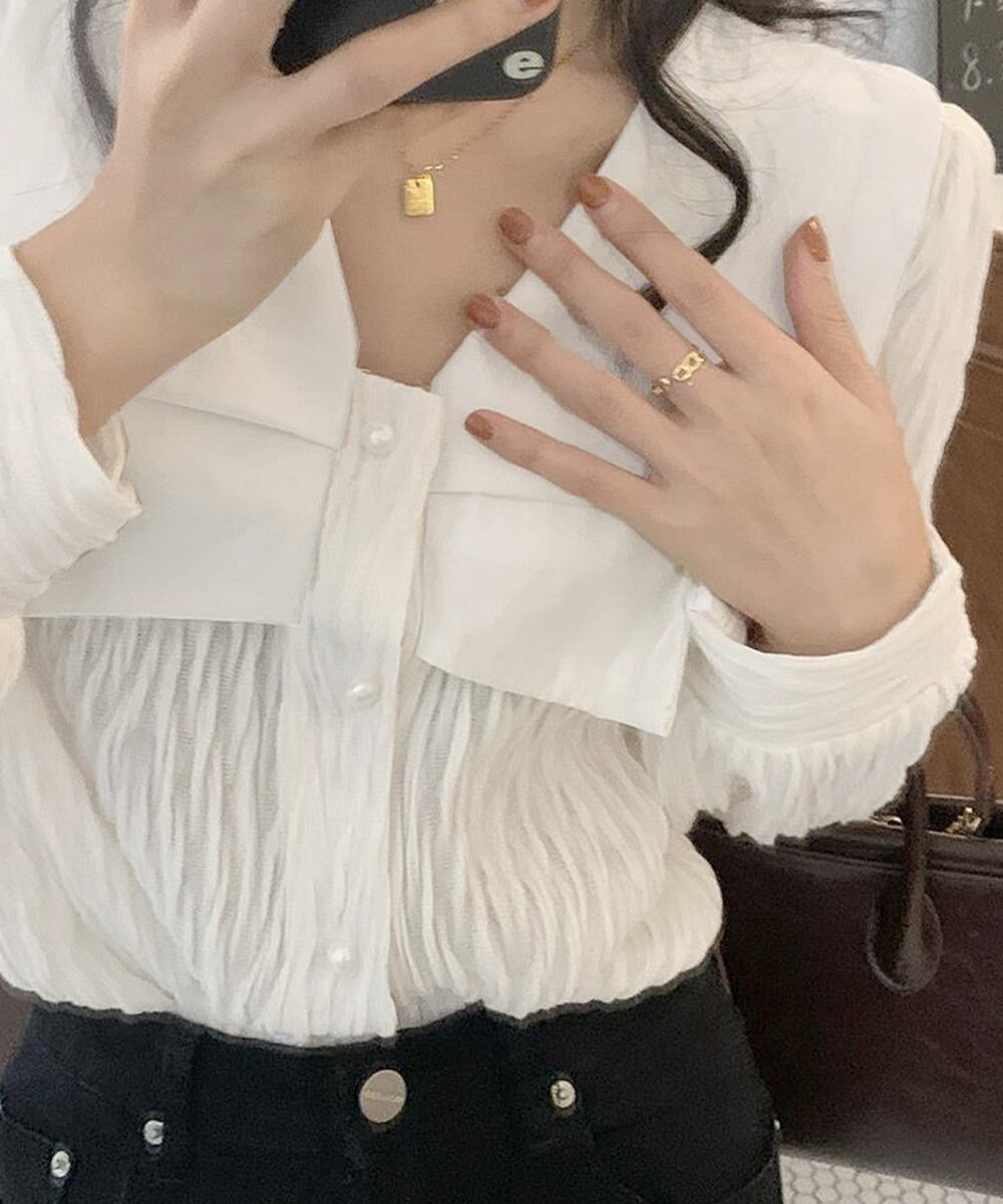 ビッグカラー ワッシャーブラウス 韓国風