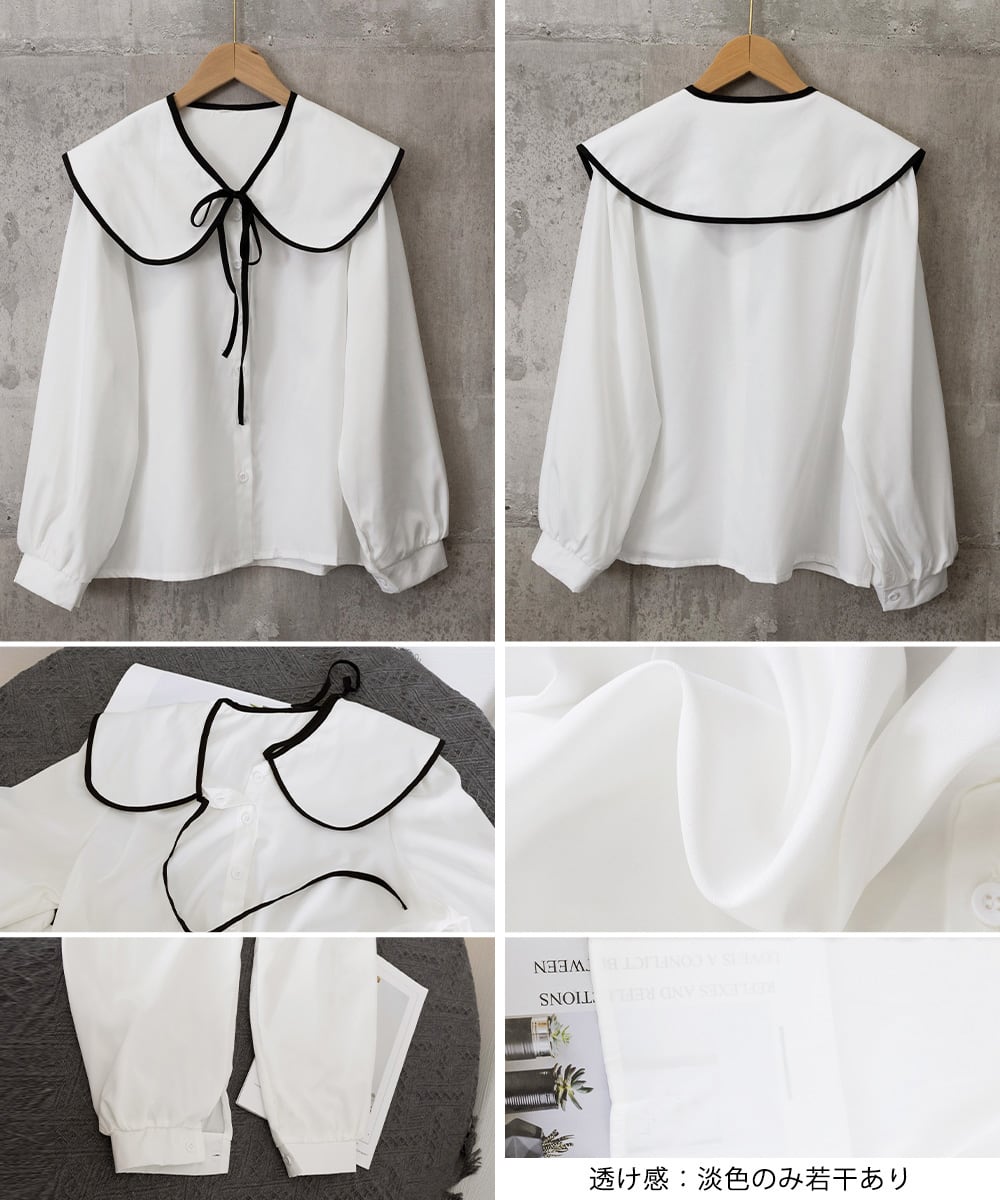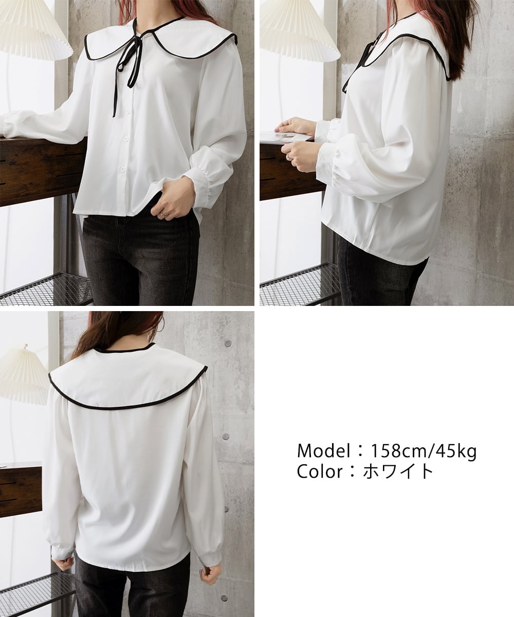 レディース バイカラーシャツブラウス フレンチガーリー 大きめ襟トップス ゆったり韓国ファッション 着やせ 体型カバー