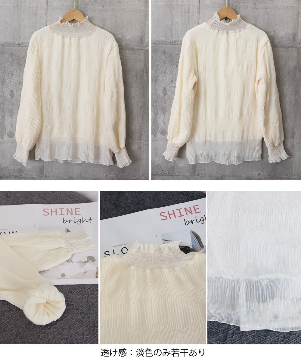 秋冬ブラウス長袖白 プリーツブラウス冬 プルオーバー 厚手
