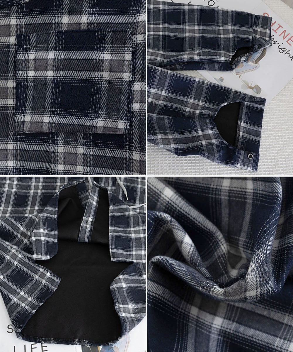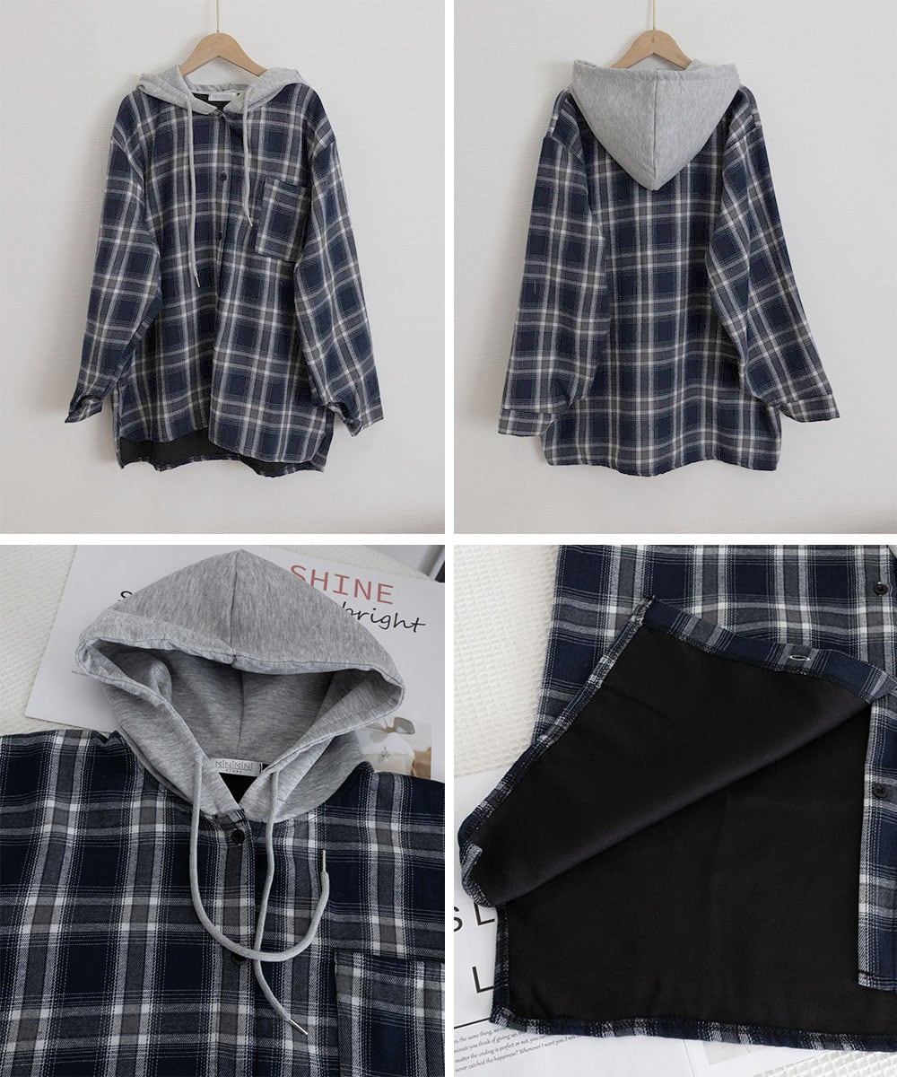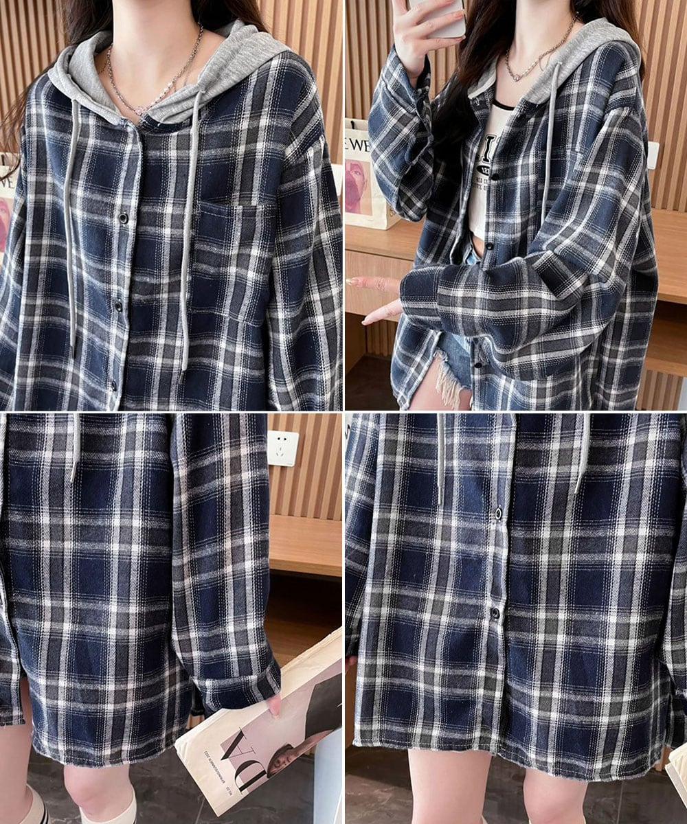 チェック柄フーデッドシャツレディース秋冬