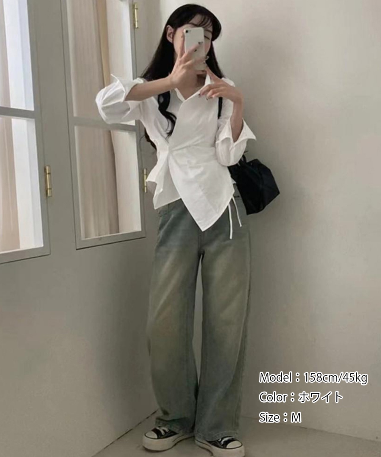 裾は斜めにカッティングされたイレギュラーヘムで、着こなしに動きとモードなアクセントをプラス。