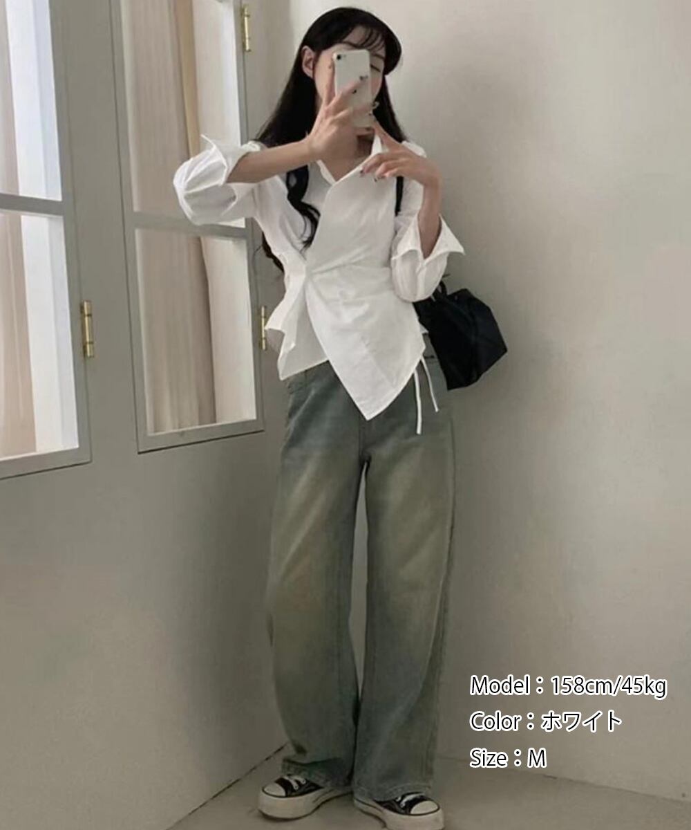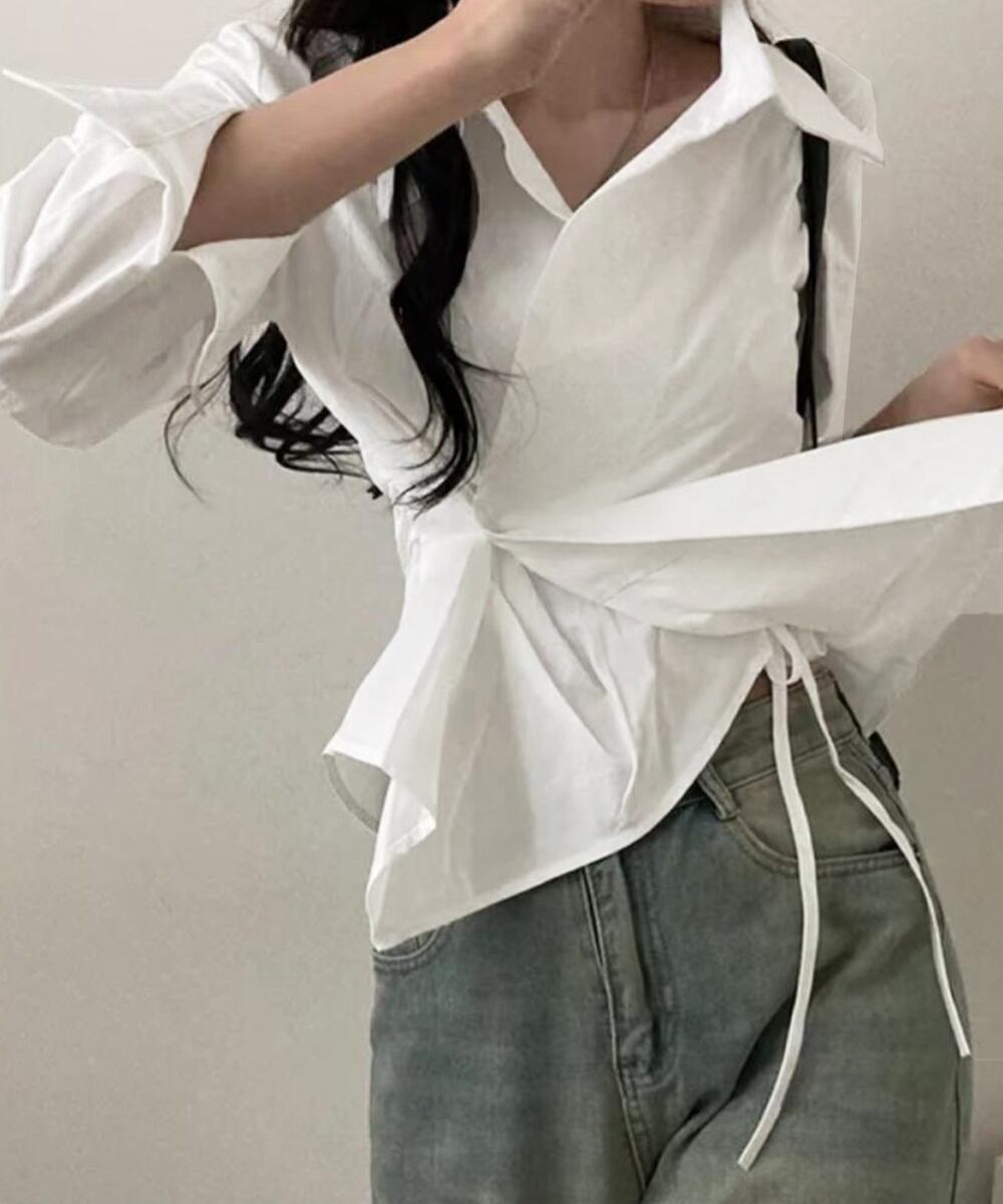 長袖ラップブラウス カシュクール春服秋服