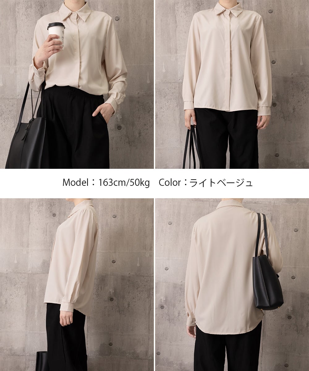 ベーシックシャツ白 前開きシャツ 通勤 大人女性ブラウス黒