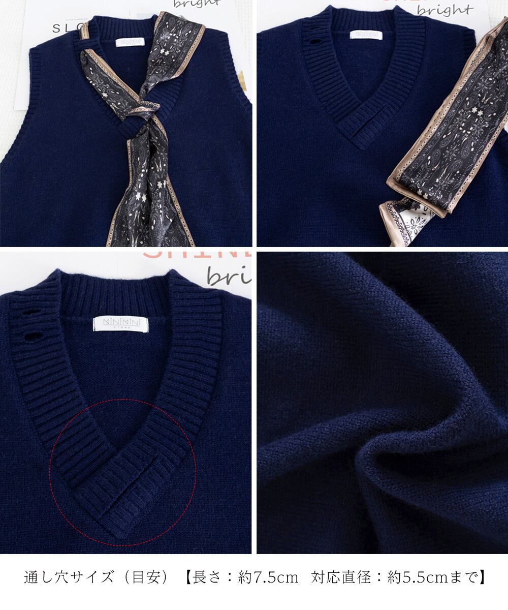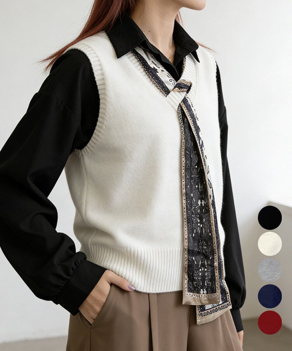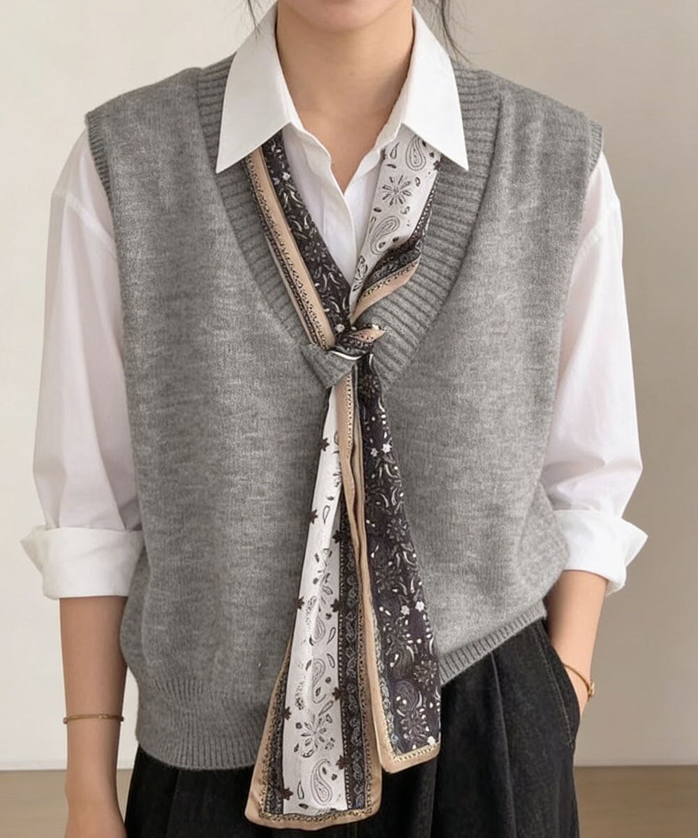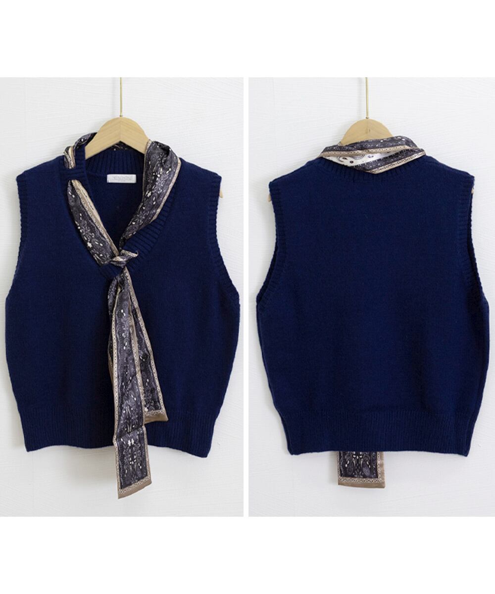 Vネックニットベストスカーフ付き 韓国風