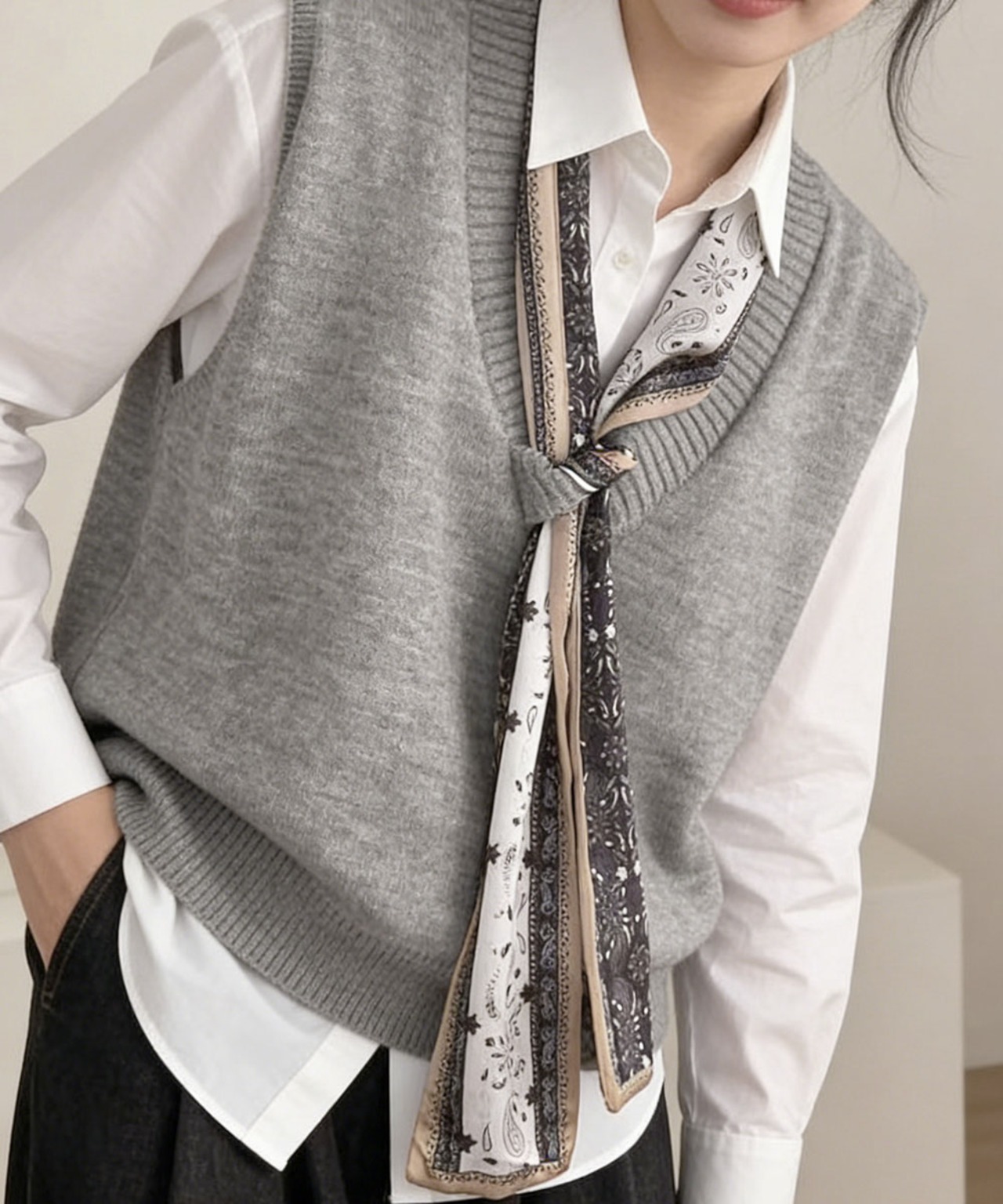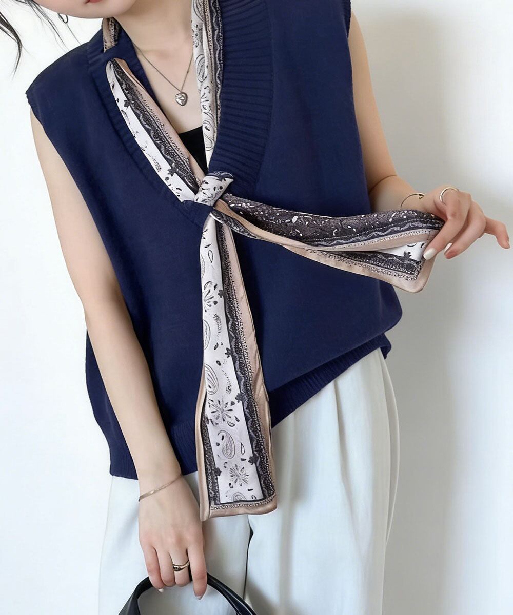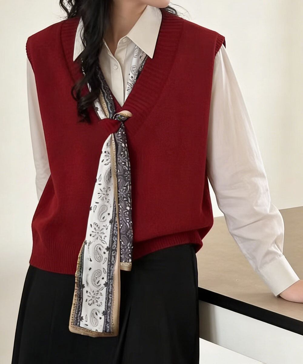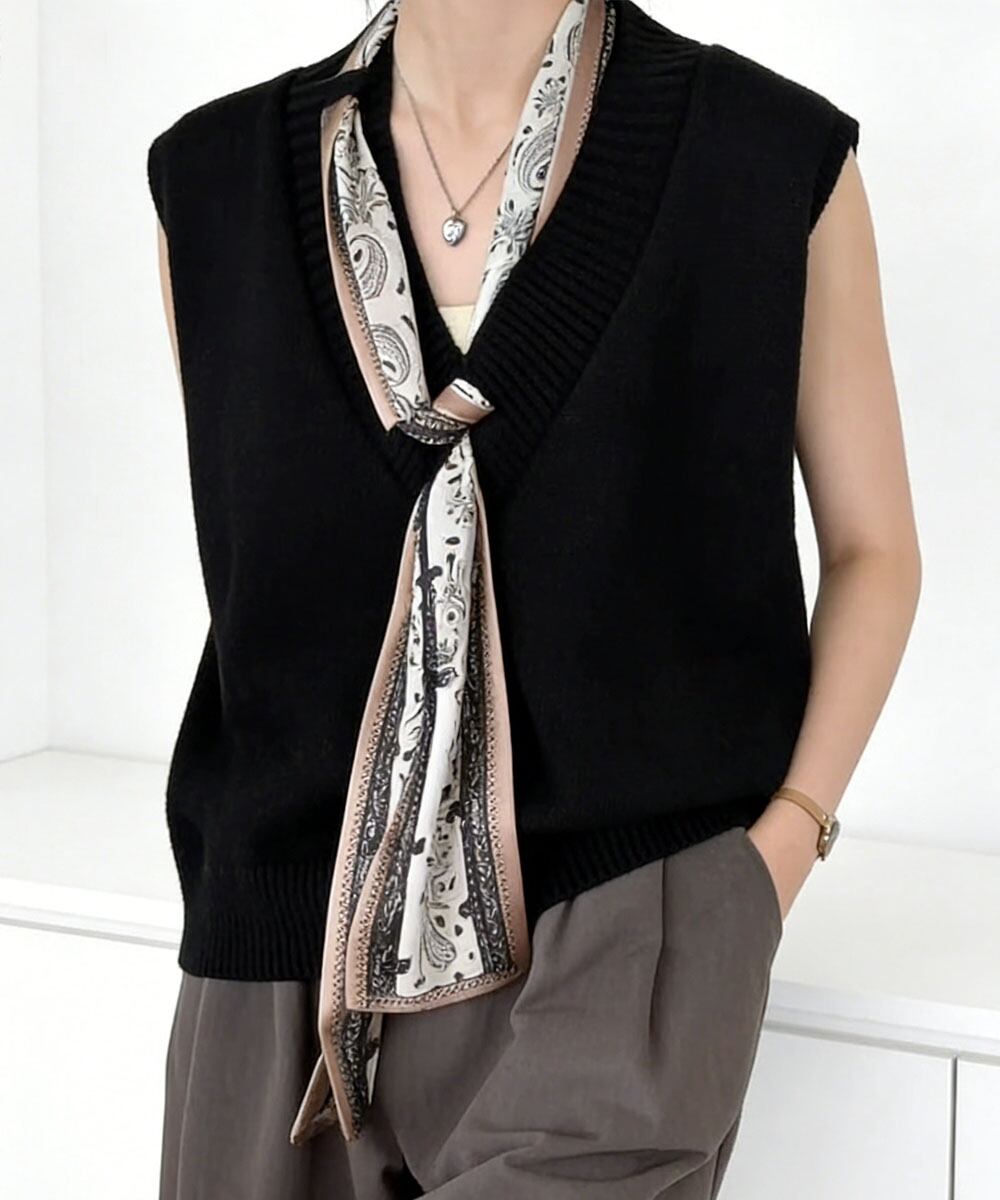 Vネックニットベストスカーフ付き 韓国風